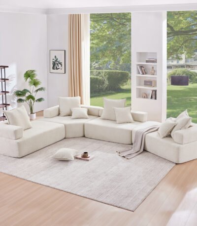 Boucle Fabric Modular U-Shaped Sofa with Versatile Configuration – 6-8 Seater – Cream