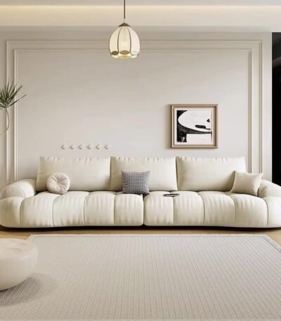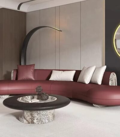 Faux Leather Arc-Shaped Sofa Set with Foam Cushions – Customizable Color