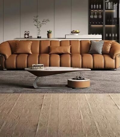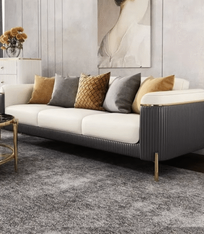Faux Leather Minimalist 3-Seater Sofa Set with Stainless Steel Accents – Custom Color Options