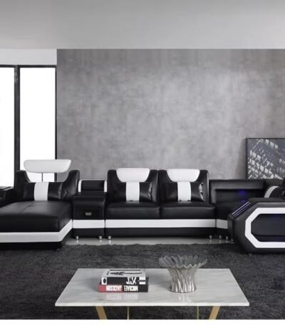 Genuine Leather Modular Sectional Sofa with Integrated LED Lighting – Fully Customizable