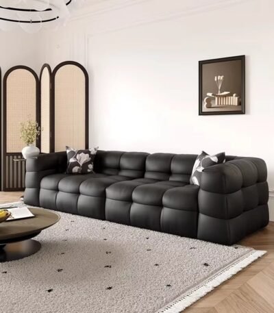 Premium Black Cowhide Leather Modular Sofa with Adjustable Design – Minimalist Style
