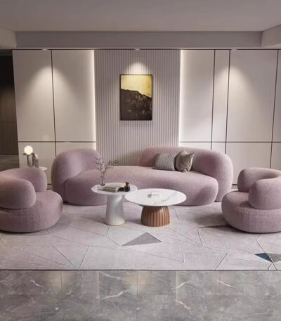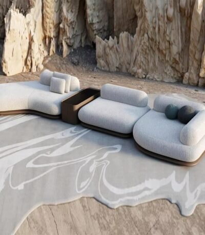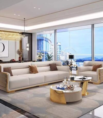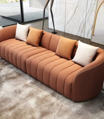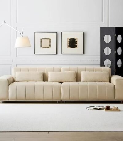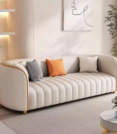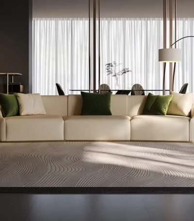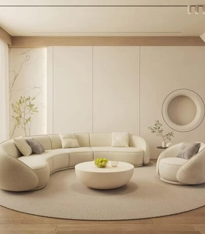 Premium Genuine Leather Curved Modular Sofa Set – Light Cream