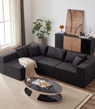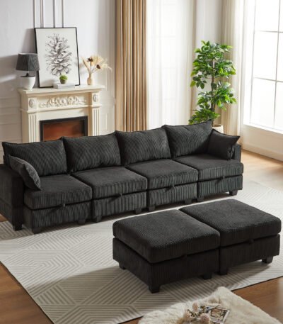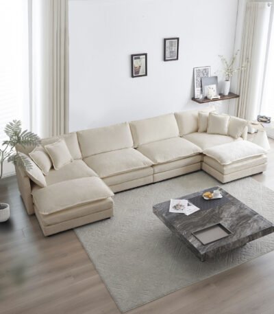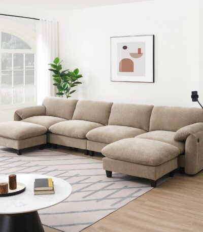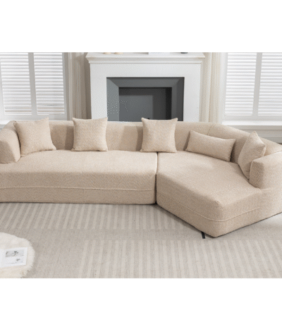Boucle Fabric Modular Sofa with 4 Pillows – Brown