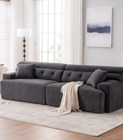 Chenille Fabric 4-Seater Compression Sofa with Wider Armrests and 2 Pillows – Gray