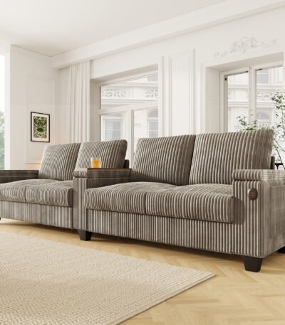 Corduroy Sofa with USB Ports and Hidden Storage – 4-Seater – Brown