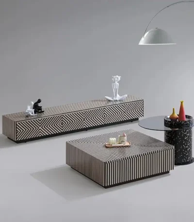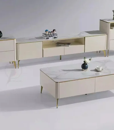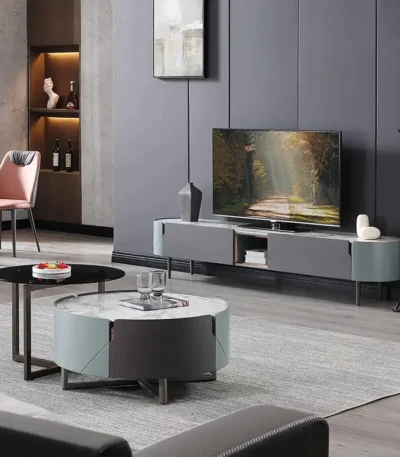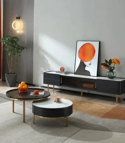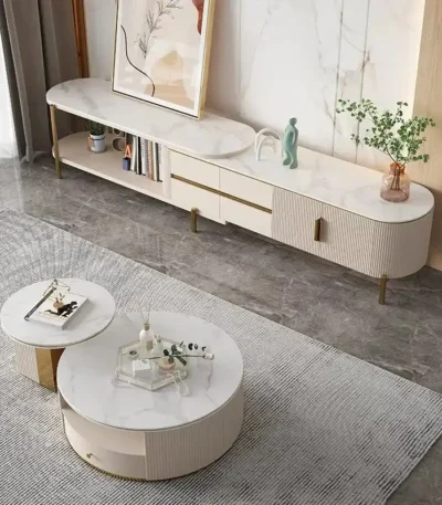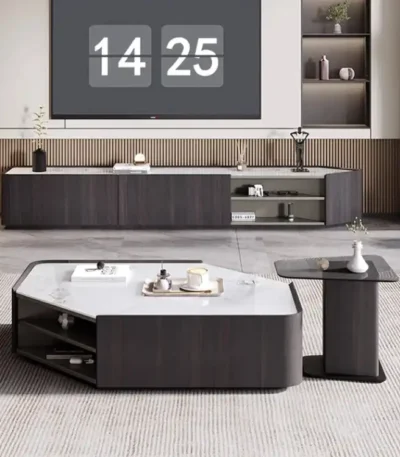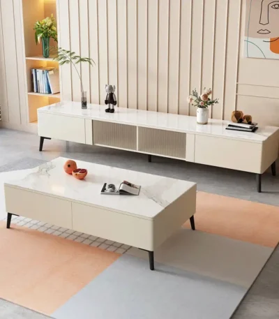 Rock Panel Coffee Table and TV Cabinet Combination with Telescopic Design – Neutral