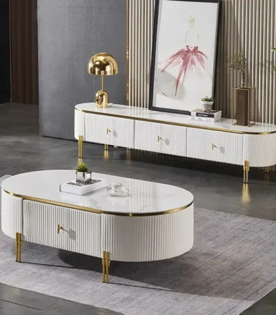 Round Golden Coffee Table Set with Sturdy TV Stand – Elegant