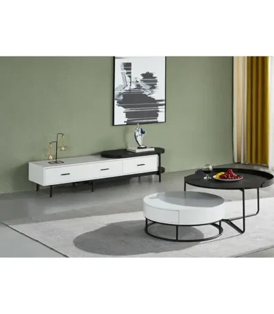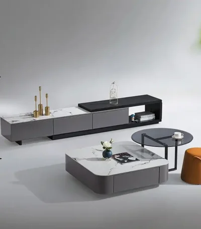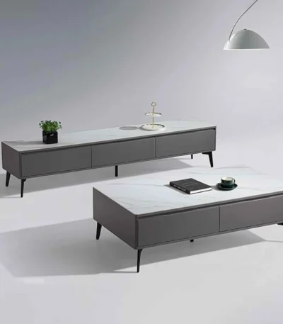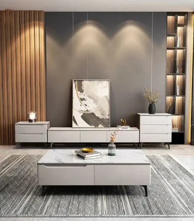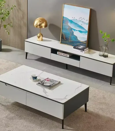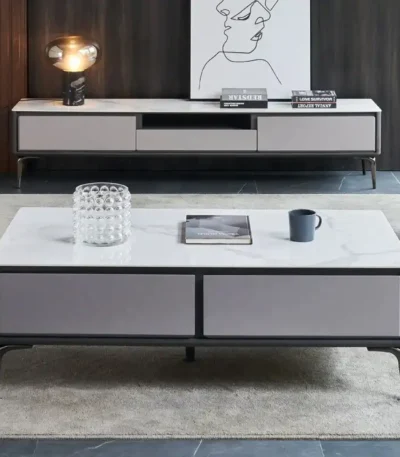 Rock Panel Coffee Table and TV Cabinet Combination with Ample Storage – Nordic Style