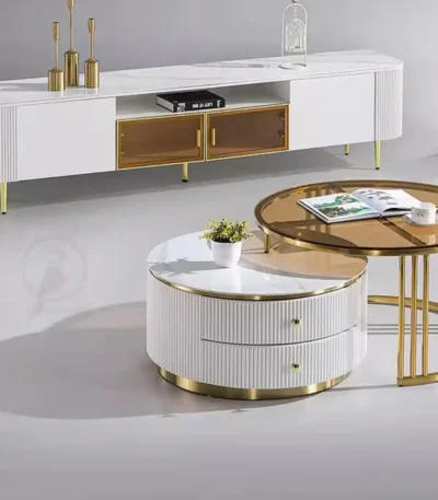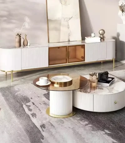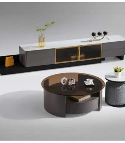 Stainless Steel Combination Tea Table and TV Cabinet Set with Rock Plate – Elegant Design