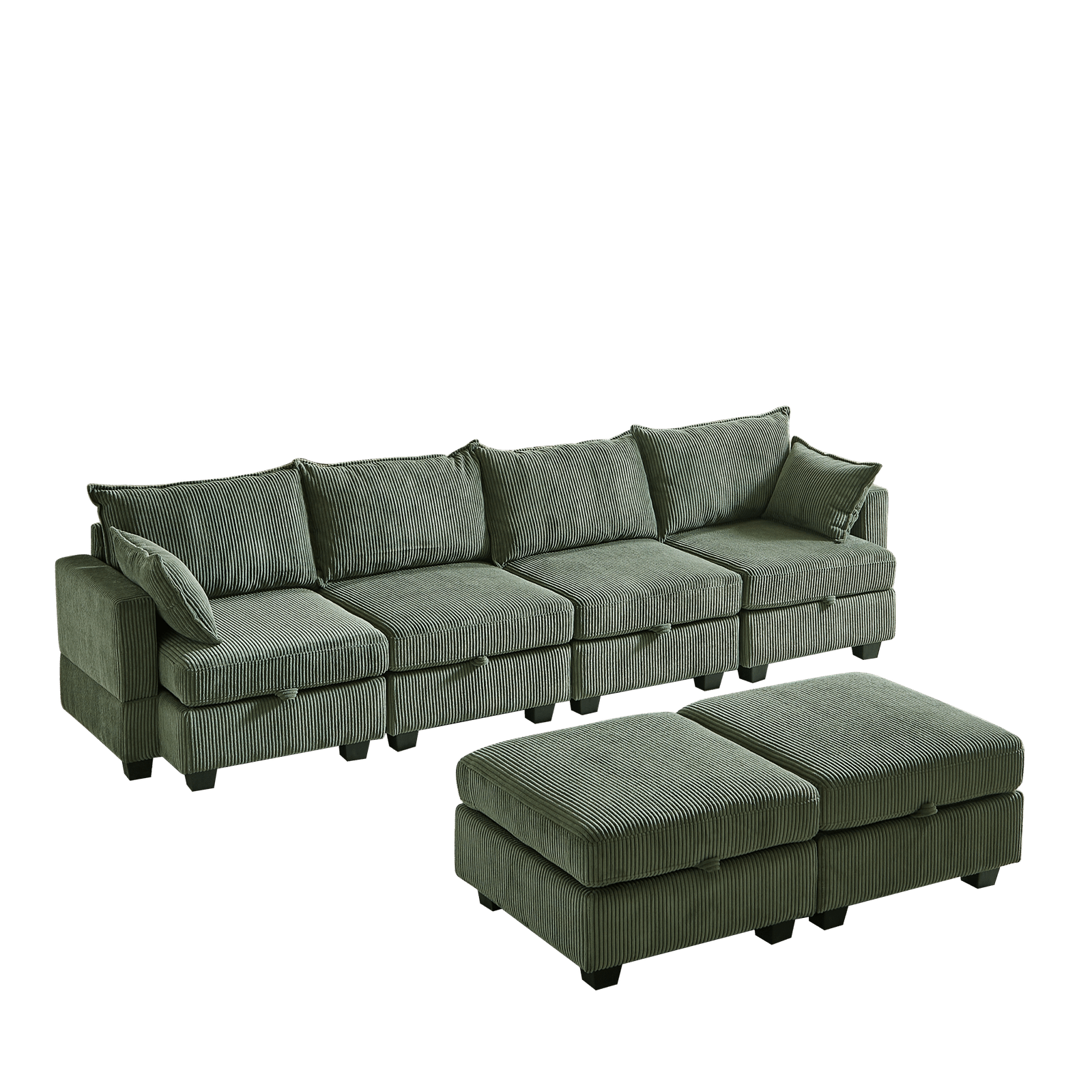 Say goodbye to clutter! Our sectional sofa features exceptional storage capabilities. Each seat is equipped with additional storage space, offering six compartments perfect for stowing away blankets, books, snacks, and even children’s toys. Similar to a small wardrobe, these storage spaces help you keep your living area organized and tidy.
