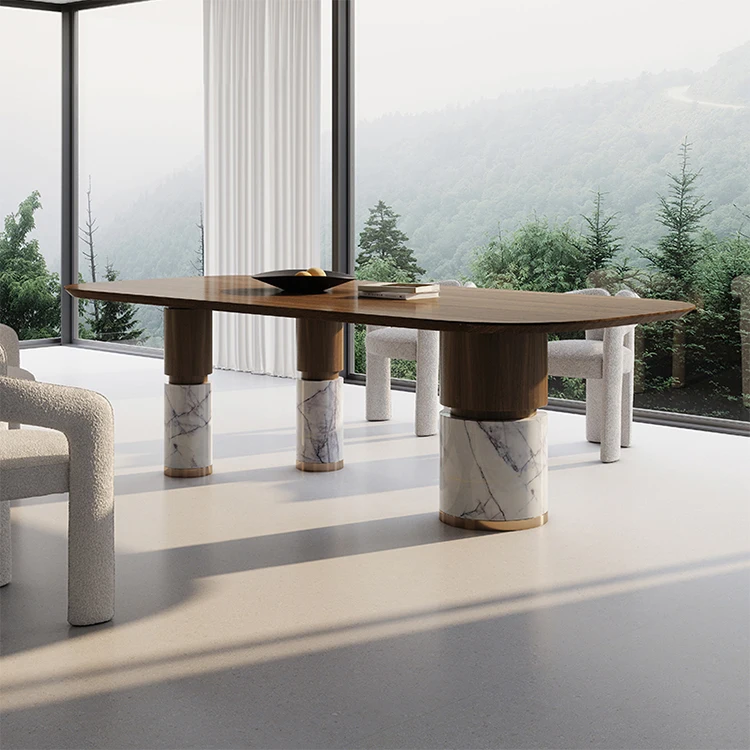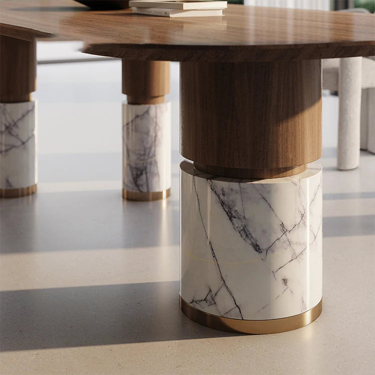 Beyond functionality, this table operates as a refined architectural statement within dining spaces. The combination of natural marble solidity and wooden warmth establishes a harmonious balance between strength and elegance, delivering enduring performance while elevating the atmosphere of modern luxury interiors.