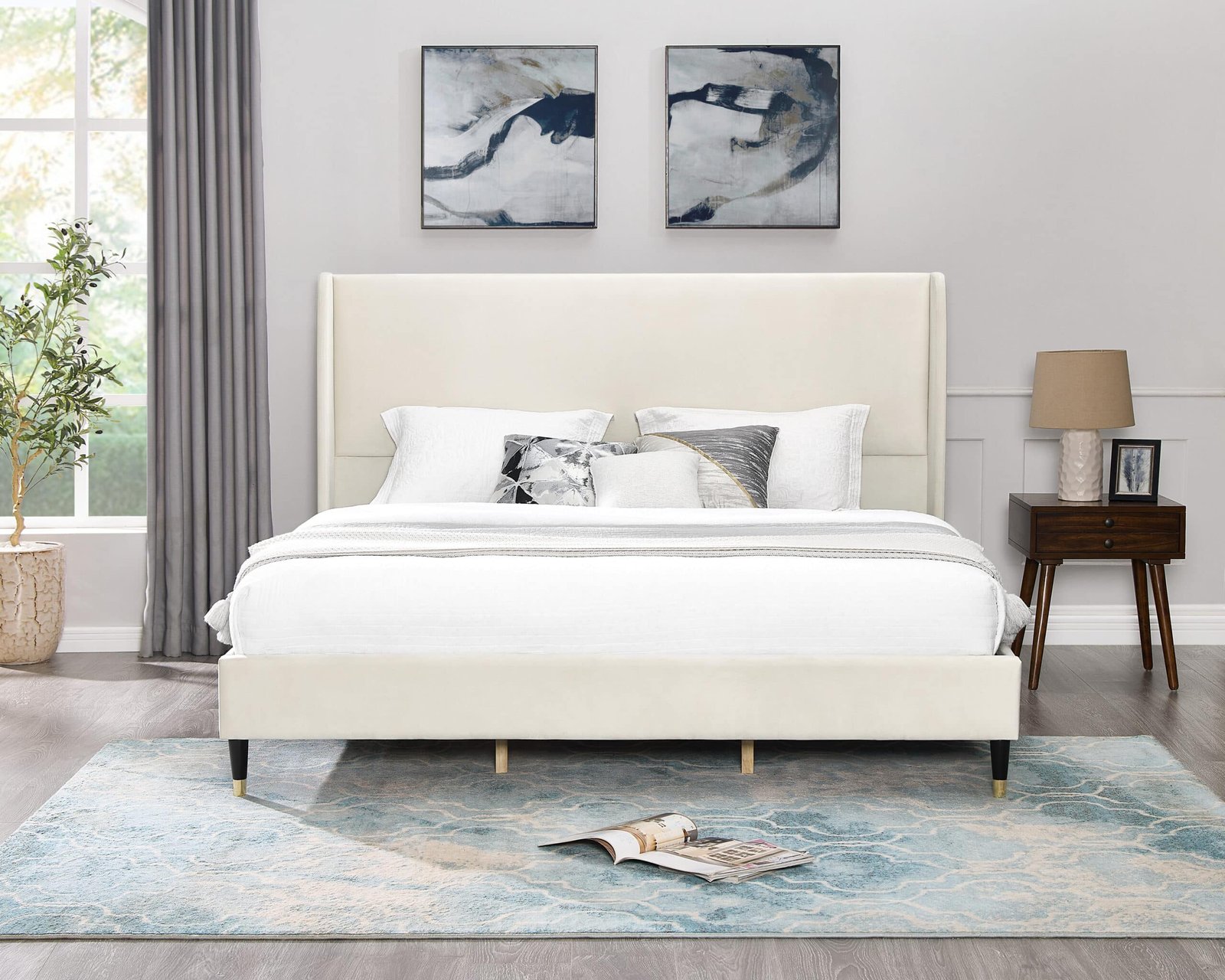 Rozitta Beige Velvet Wingback Platform Bed, King