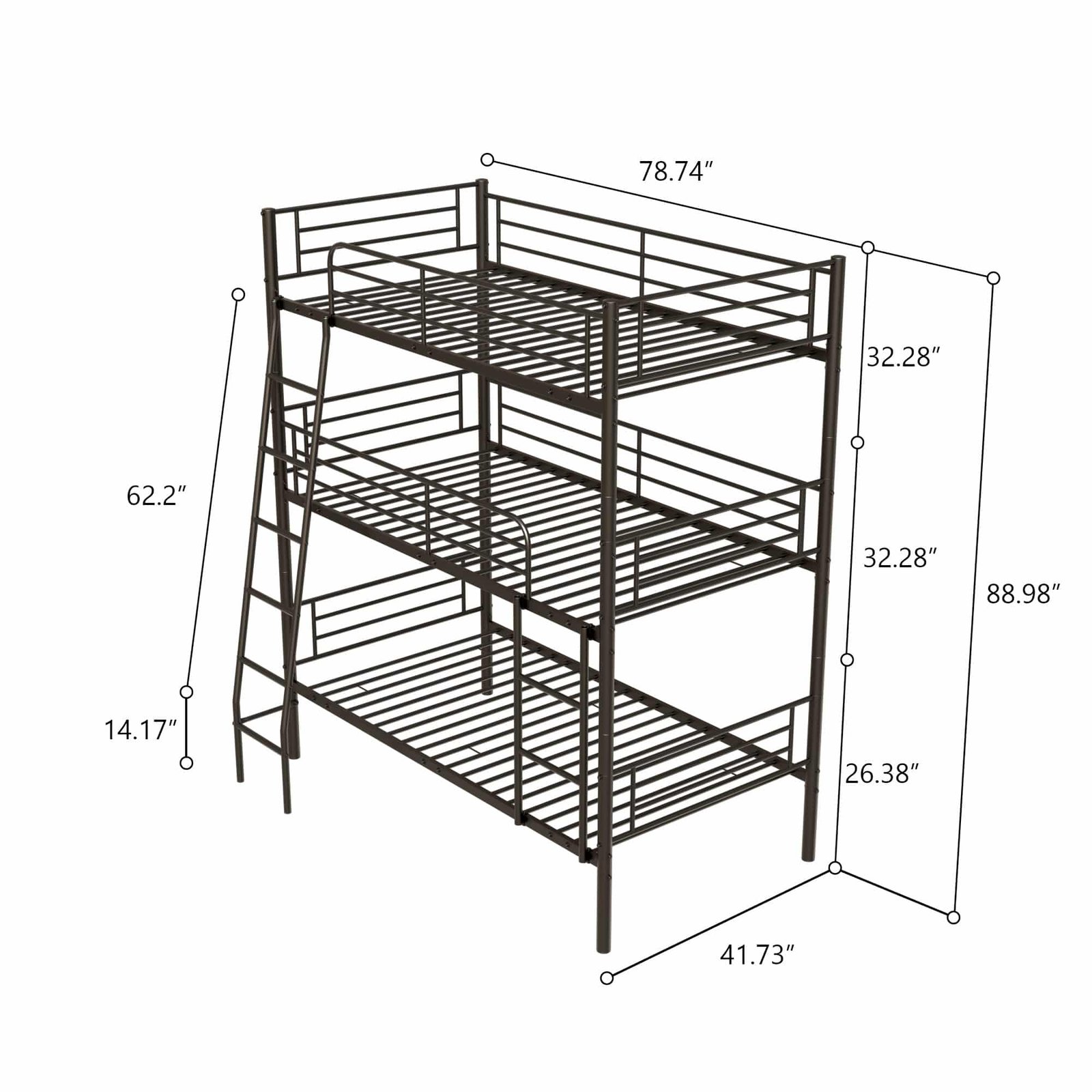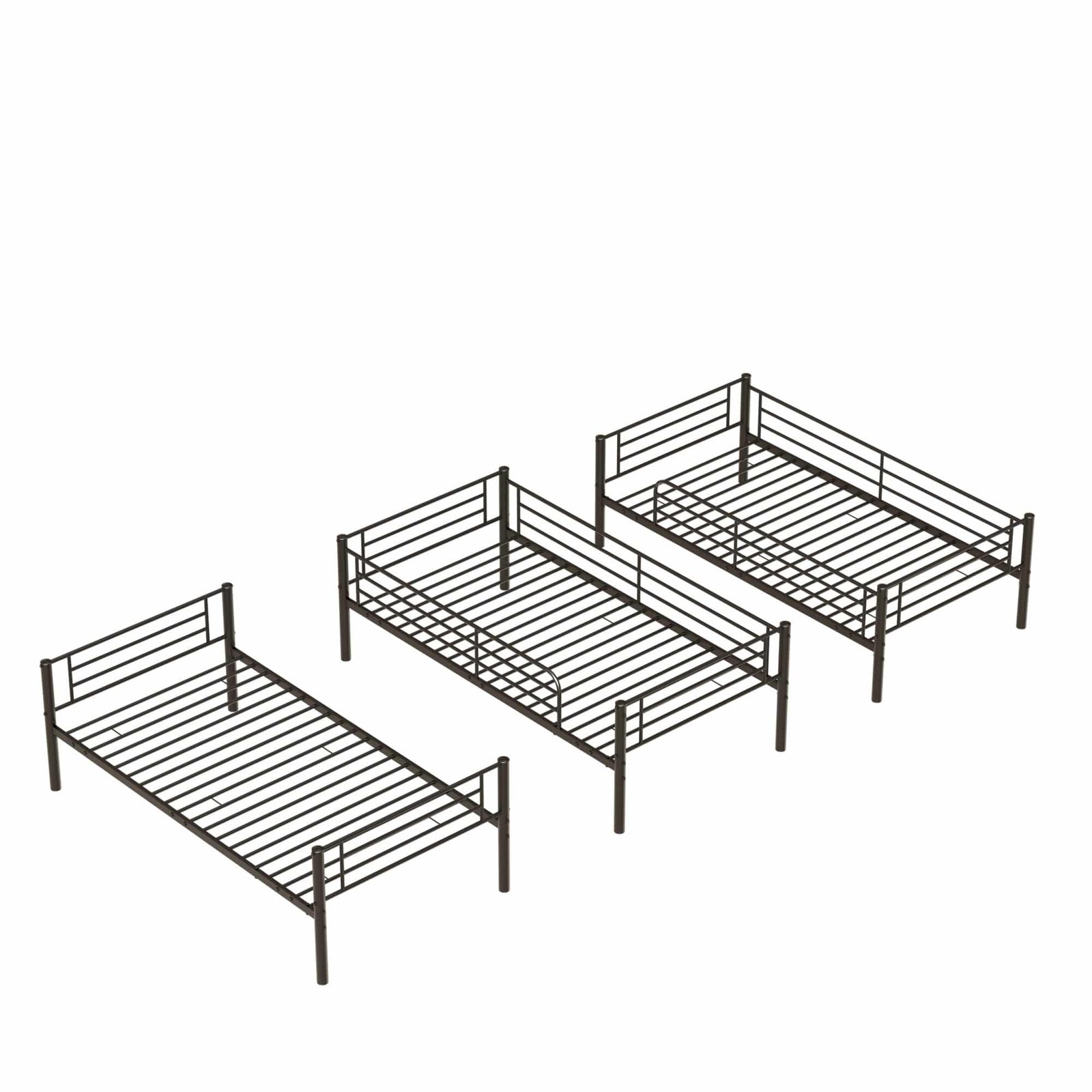 Introducing our innovative twin size black metal triple bunk bed, designed for dormitories and children’s bedrooms alike. This exceptionally versatile bed not only offers comfortable sleeping solutions but also maximizes your available space. Perfect for families or guests, it adapts to your needs seamlessly.
