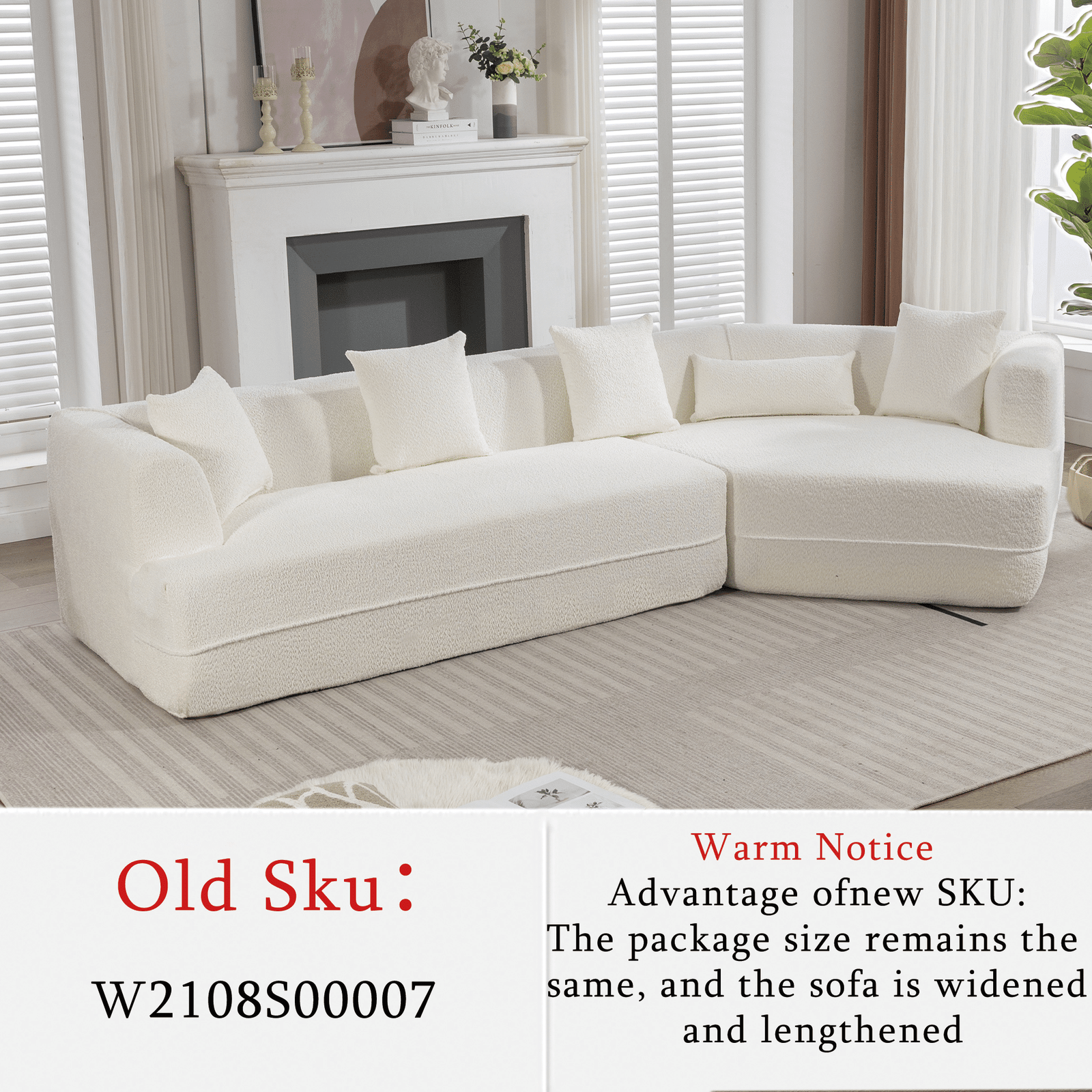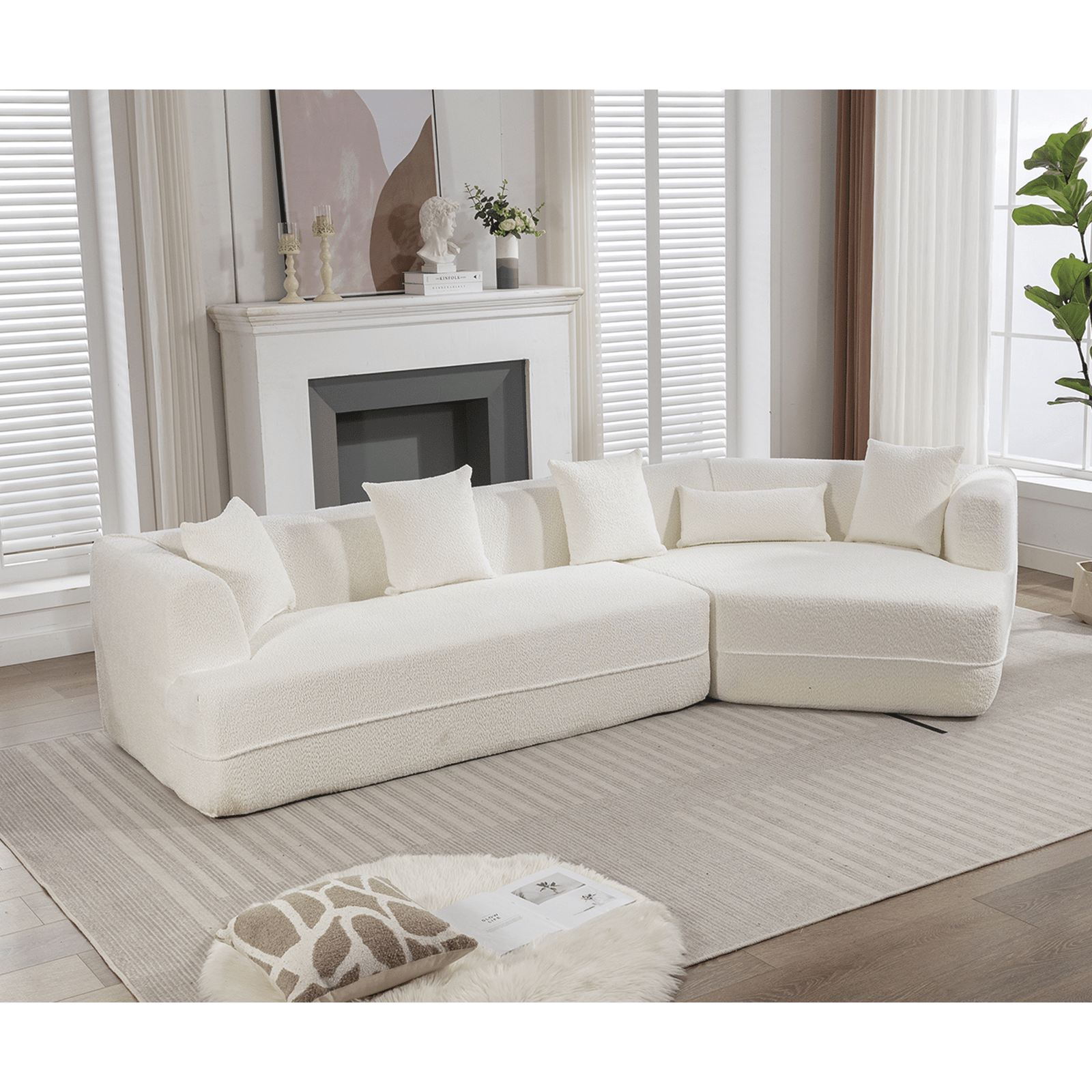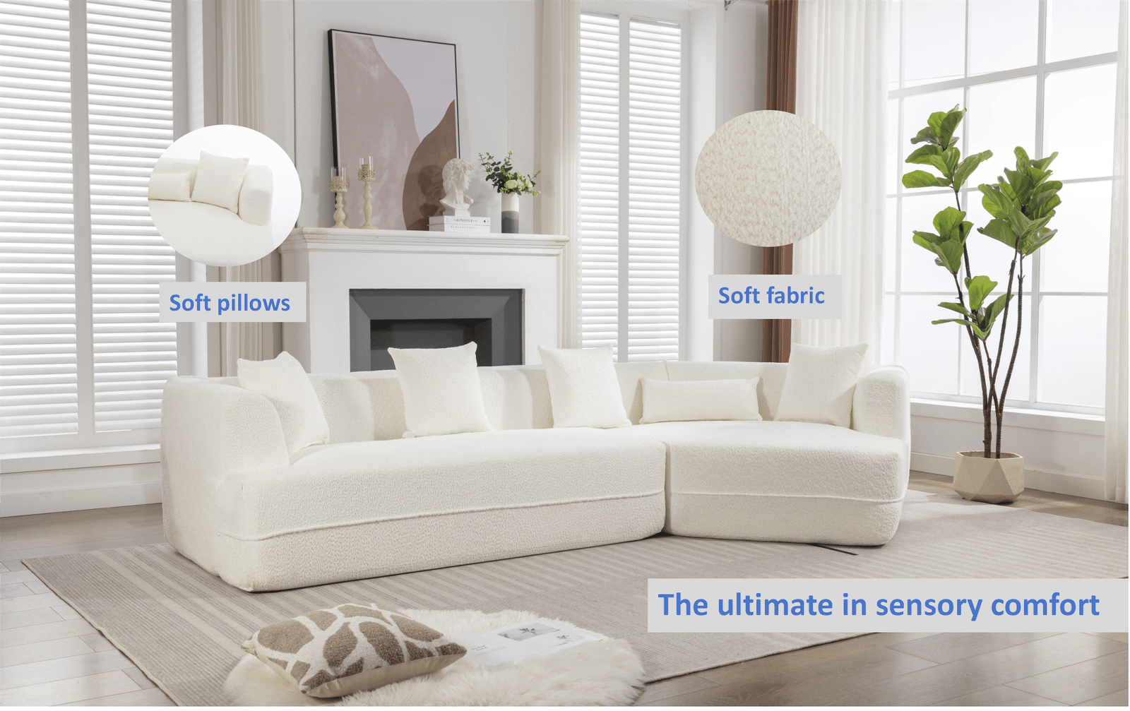 Boucle Fabric Modular Sofa with 4 Pillows – Creamy White