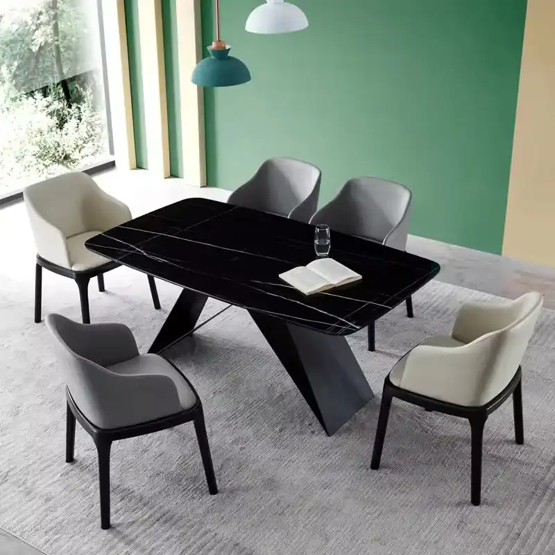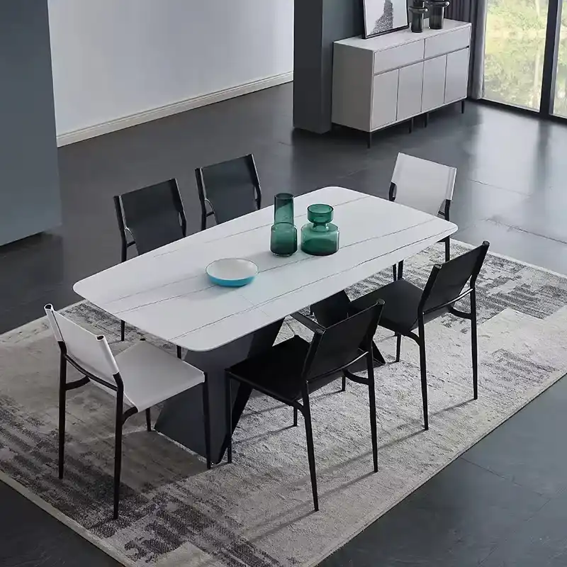 Our Modern Living Room Ceramic Dining Table fits seamlessly into various interior styles. Whether your home features a minimalist design, a cozy traditional aesthetic, or a modern chic vibe, this table adds a touch of elegance. Its neutral tones and sleek finish mean it can effortlessly blend with your existing furniture, becoming a harmonious part of your living space.