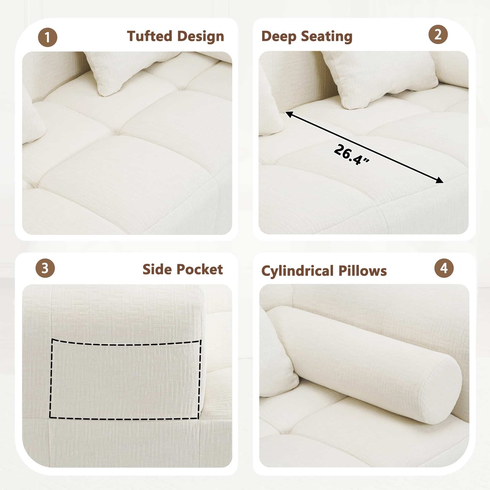 - Stylish Aesthetics: Upholstered in soft, neutral-toned chenille fabric, enhanced with elegant tufted detailing, it complements a wide range of interior styles.
