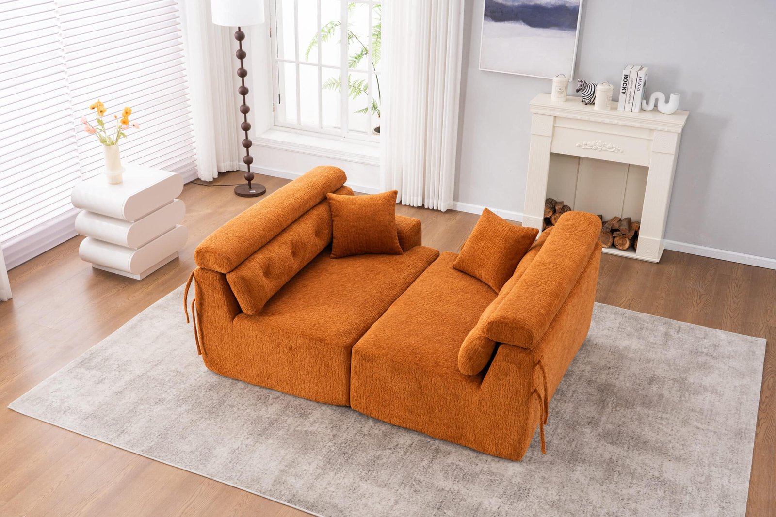 Chenille Fabric Reconfigurable Sectional Sofa with Wider Armrests and 2 Pillows – Amber Orange