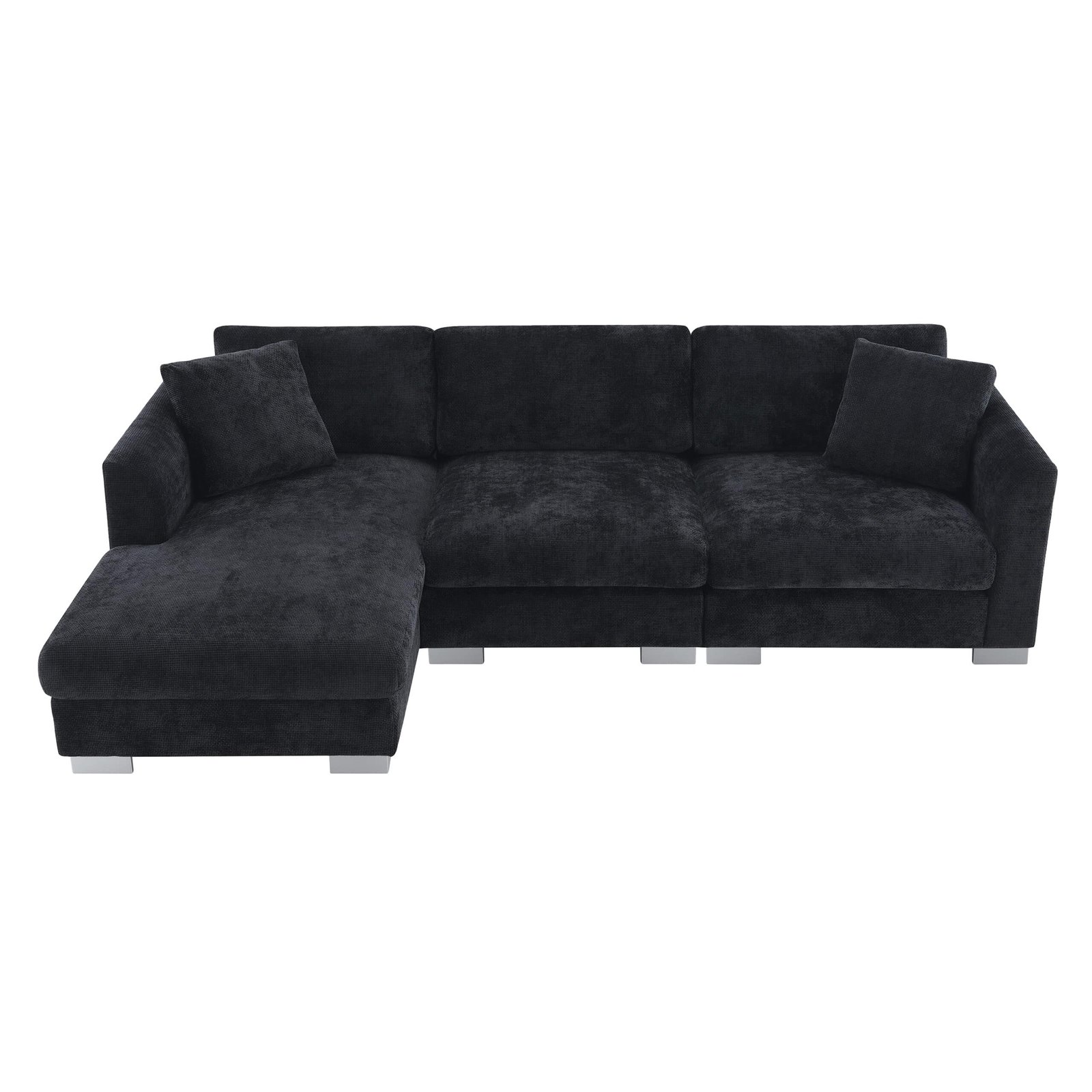 Chenille L-Shaped Sectional Sofa with Oversized Chaise and 2 Pillows – Available in 3 Colors
