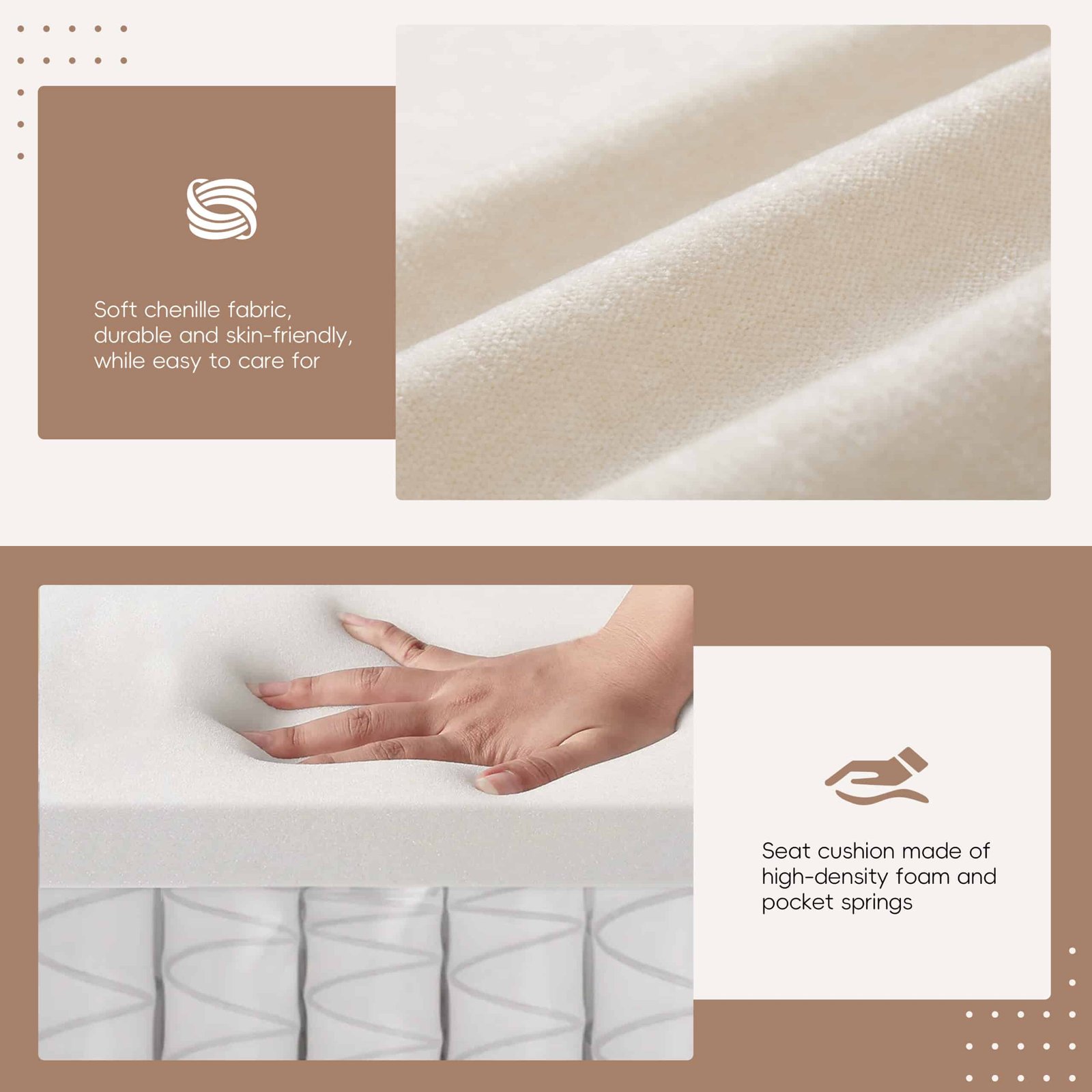 • Upholstery Material: Plush chenille for a soft, inviting feel