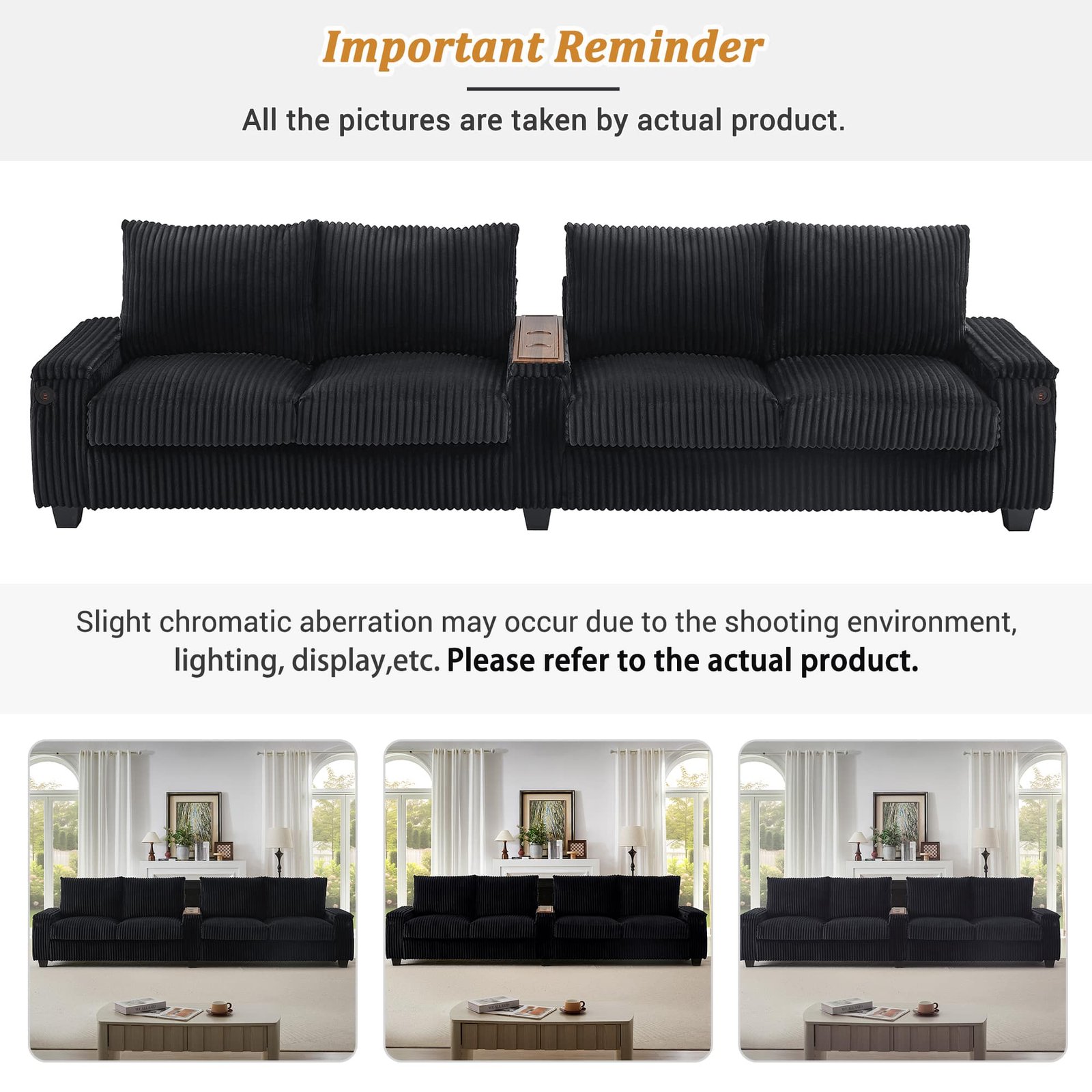 Corduroy Sofa Couch with USB Ports and Hidden Storage – 4-Seater – Black