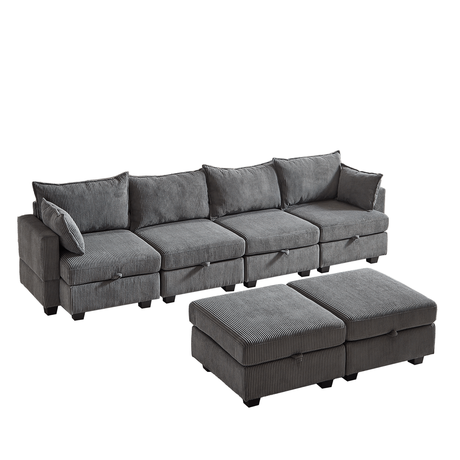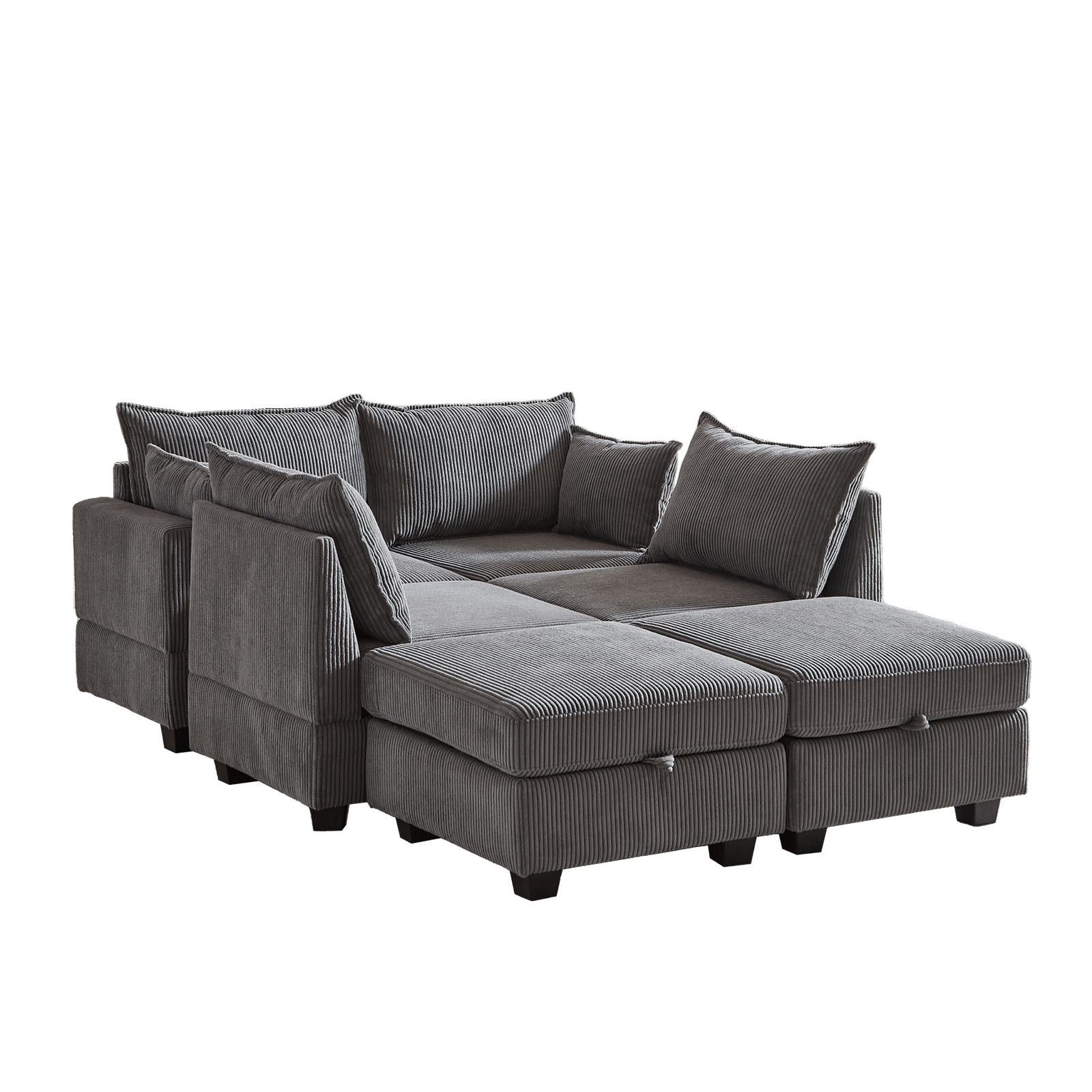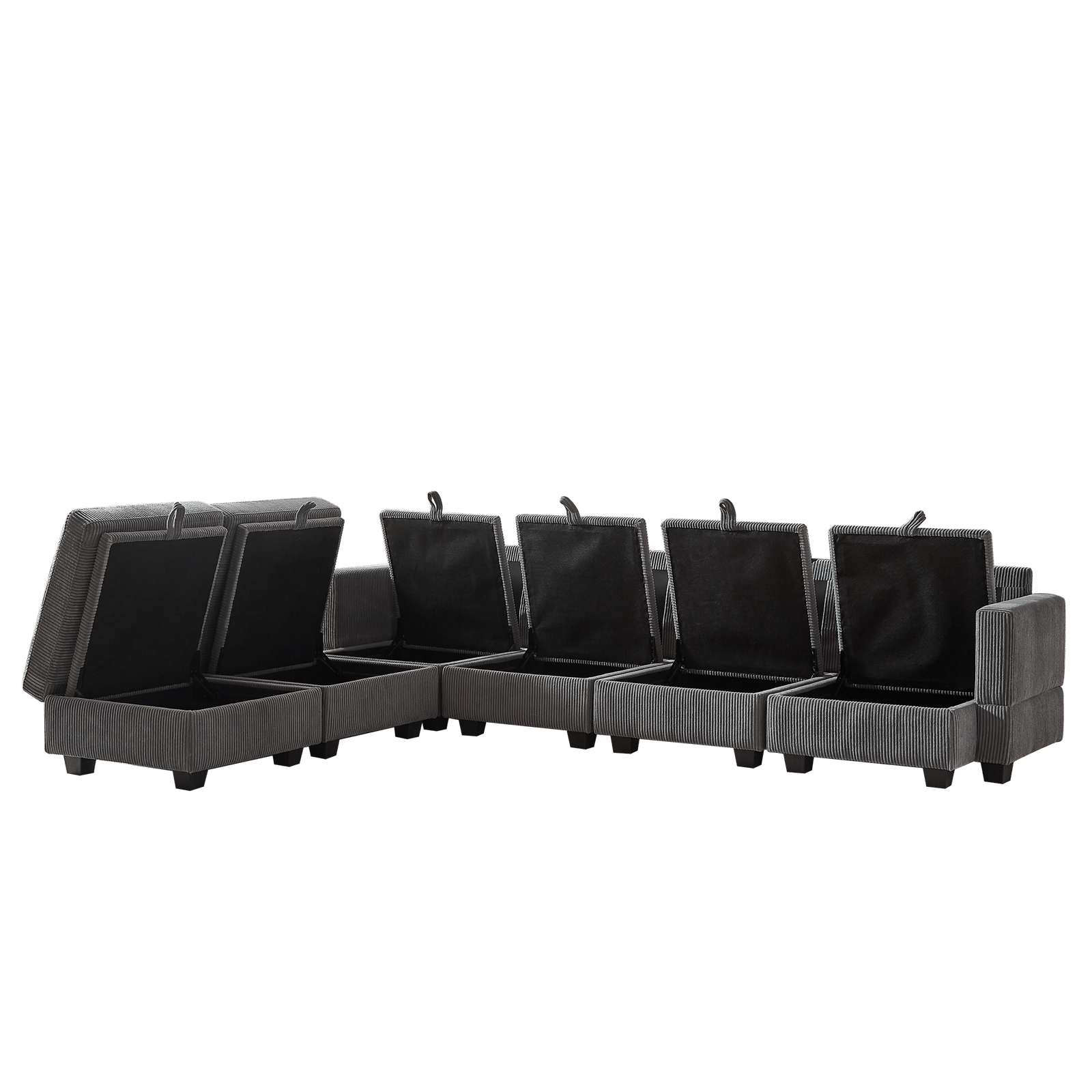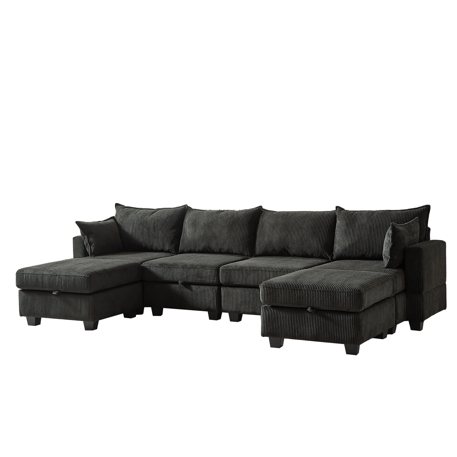 Corduroy U-Shaped Modular Sofa with Storage Ottoman – 6-Seater – Versatile Configuration