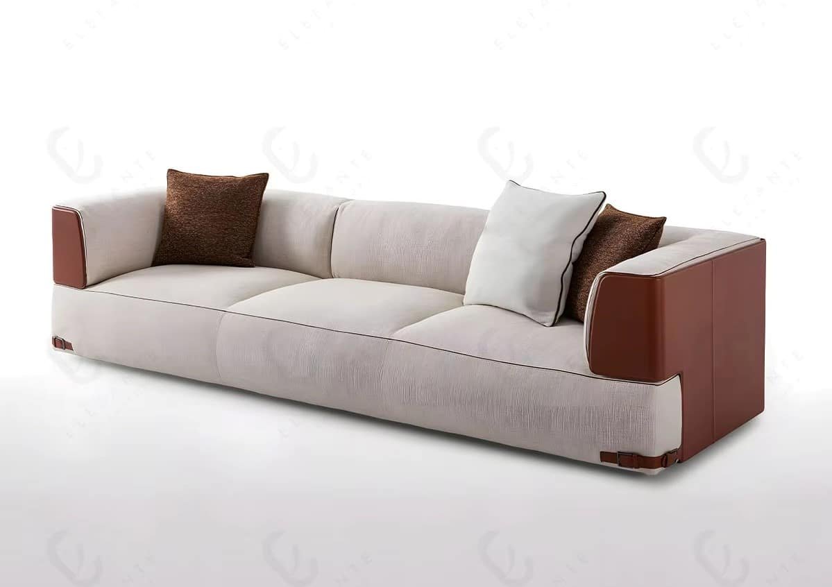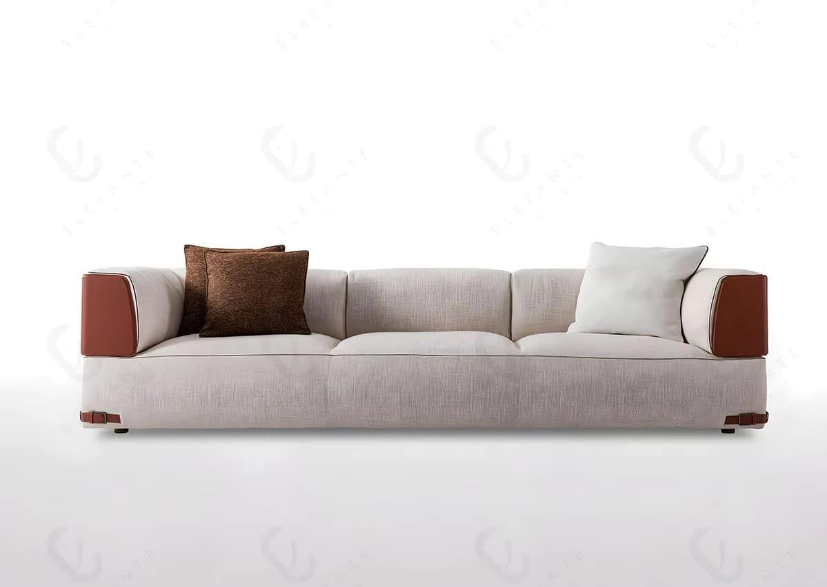 The exquisite fabric upholstery, available in a variety of choices, enhances the luxurious texture, while the pillow-back and high-resilience foam fillings ensure consistent relaxation. The sleek, straight arms and shiny stainless-steel legs provide a perfect contemporary touch, making it suitable for both simple and sophisticated interiors.