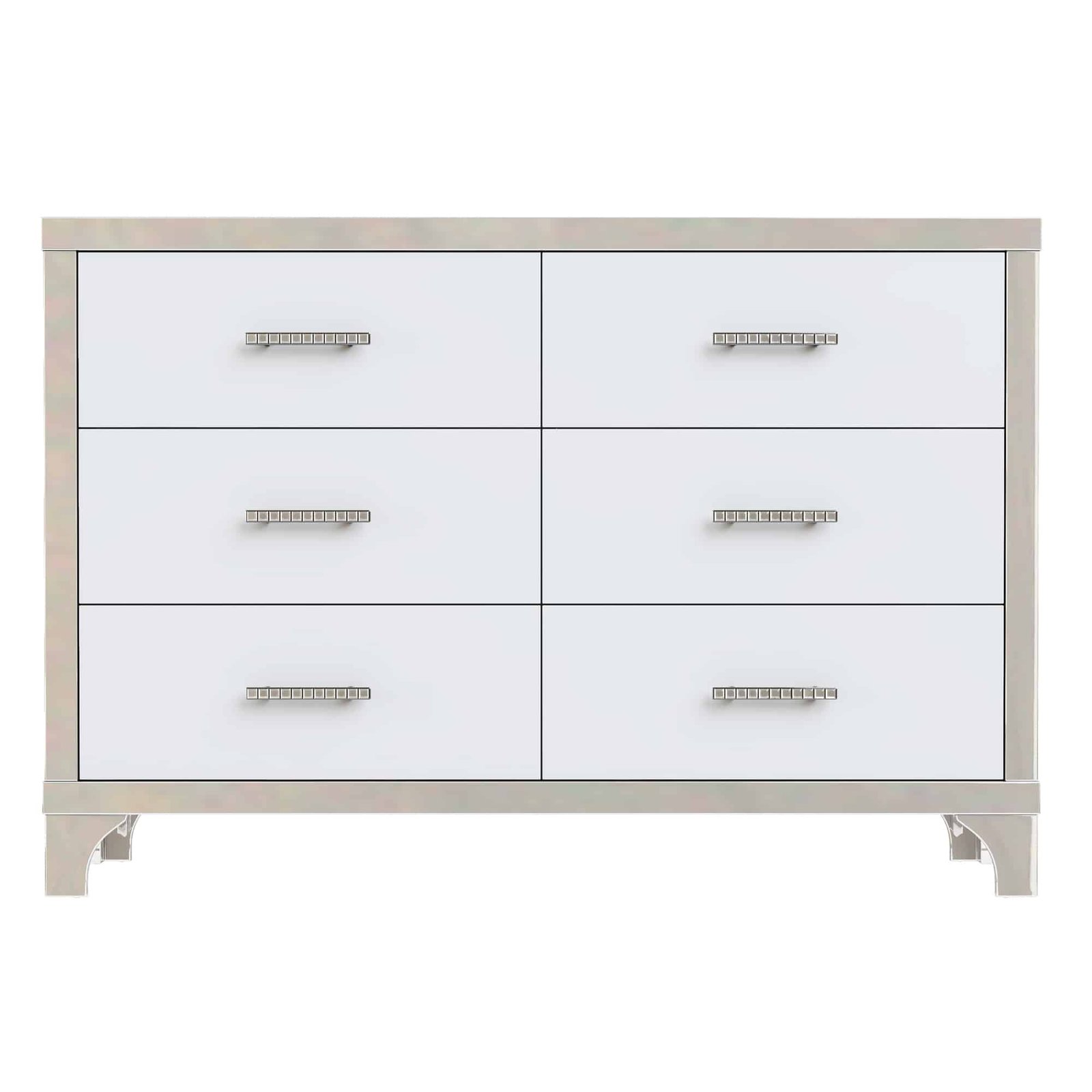 Bring elegance and modern functionality into your home with the Elegant High Gloss 6-Drawer Dresser in White. Designed with a clean, contemporary profile, this dresser doubles as a mirrored storage cabinet that not only organizes your space but also enhances your décor with a bright, reflective finish.