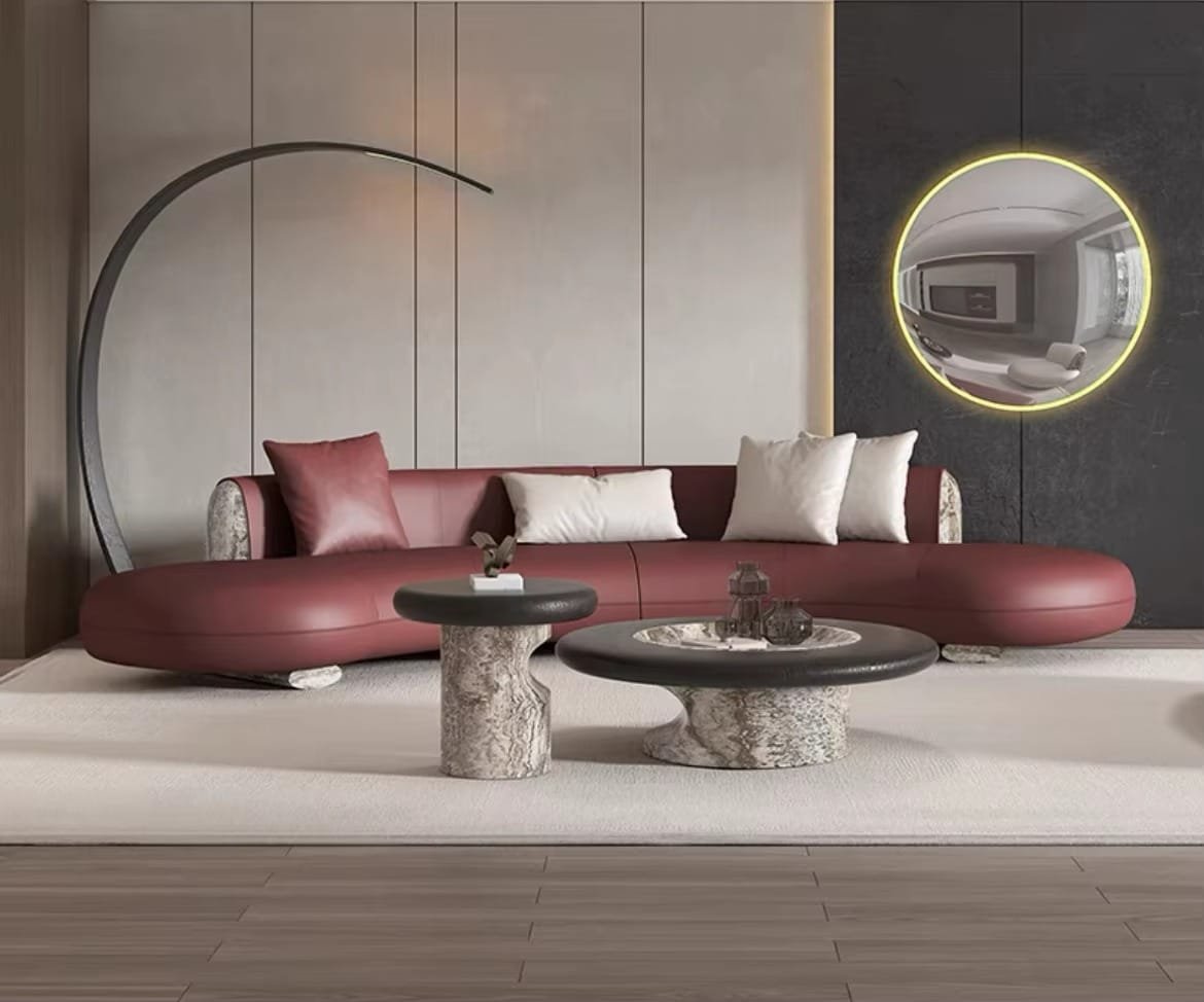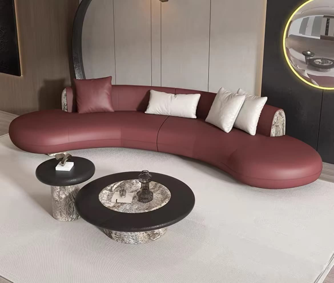 Faux Leather Arc-Shaped Sofa Set with Foam Cushions – Customizable Color