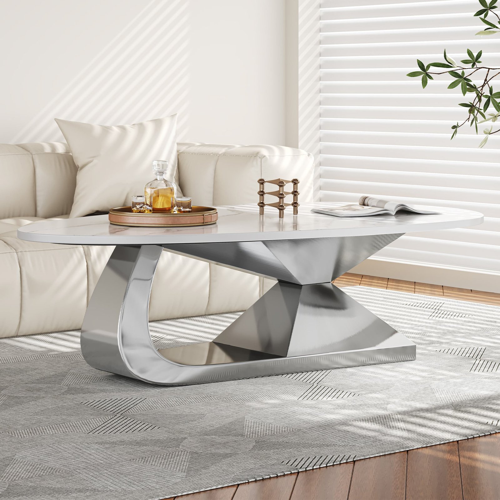 Upgrade your living room with our sleek Modern Sintered Stone Tabletop Coffee Table, designed to elevate your space while providing unrivaled durability. Featuring a chic stainless steel base, this coffee table seamlessly blends stylish design with practical functionality, making it the perfect centerpiece for any modern home.