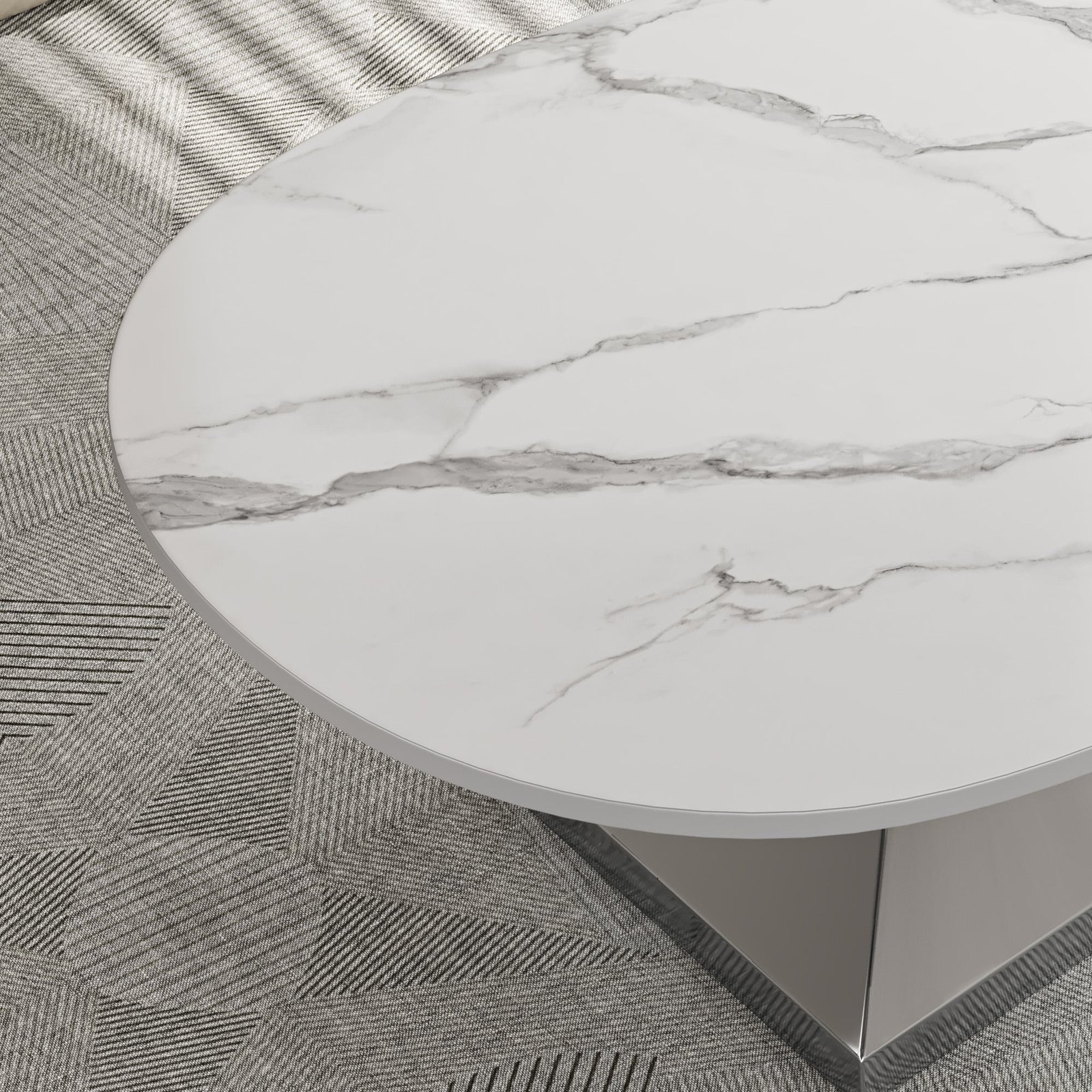 Faux Marble Coffee Table with Stainless Steel Base – Modern Design