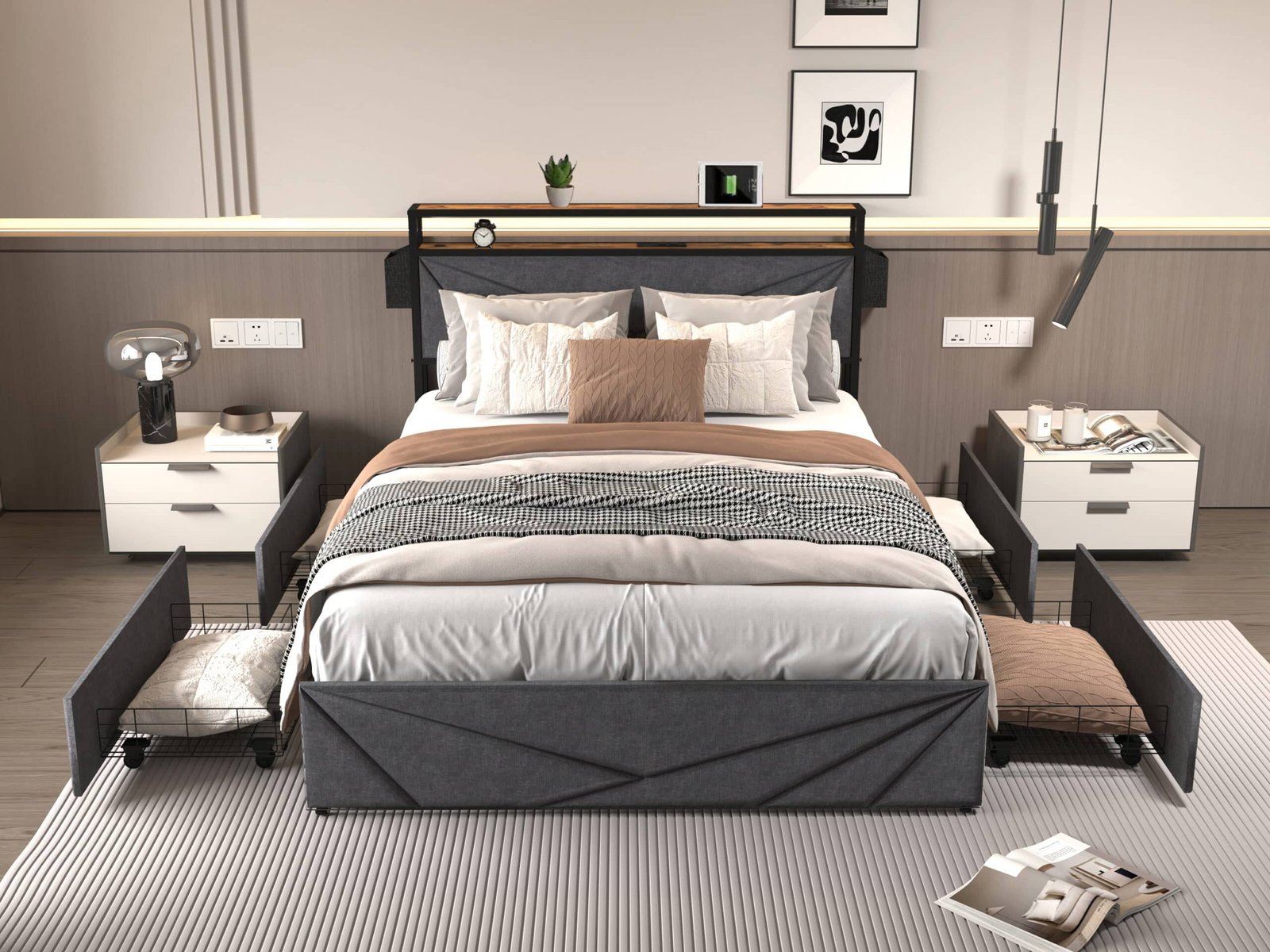 • Ample Storage: The integrated storage headboard allows you to tidy up your space, keeping essential items like glasses, books, and devices organized and easily accessible.