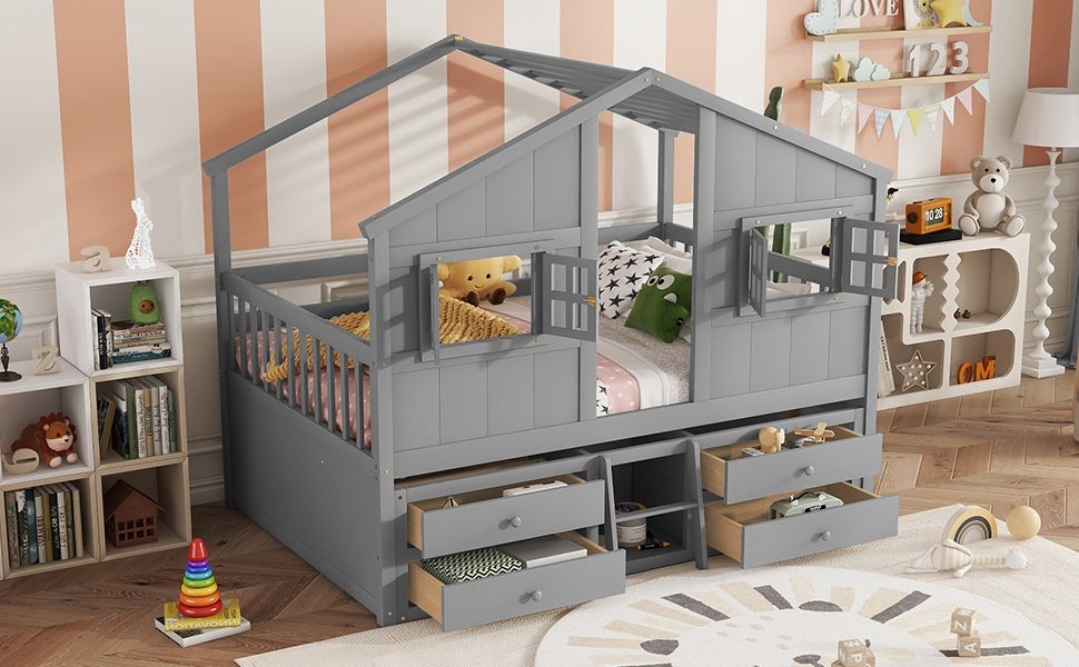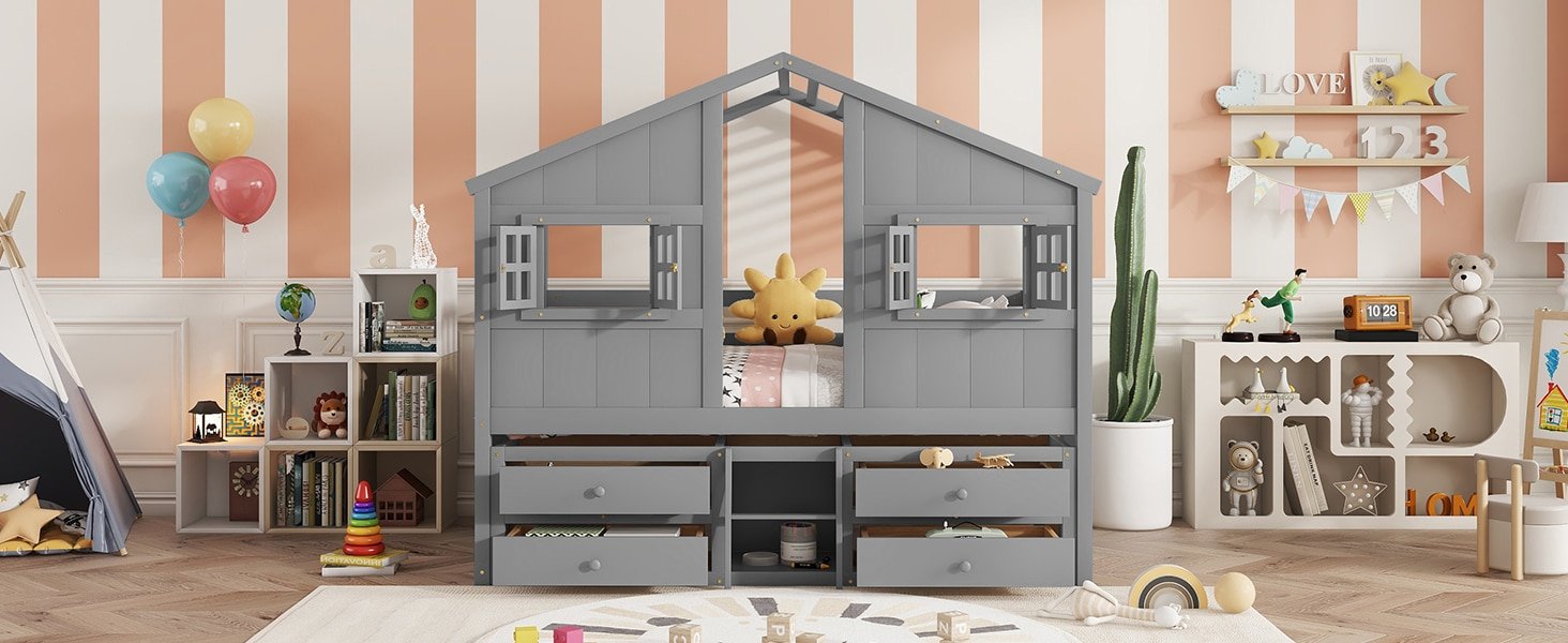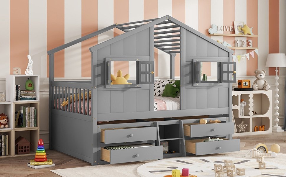 Ultimate Wooden House Loft Bed with Roof & Windows – Safe, Stylish & Fun for Kids’ Imagination
