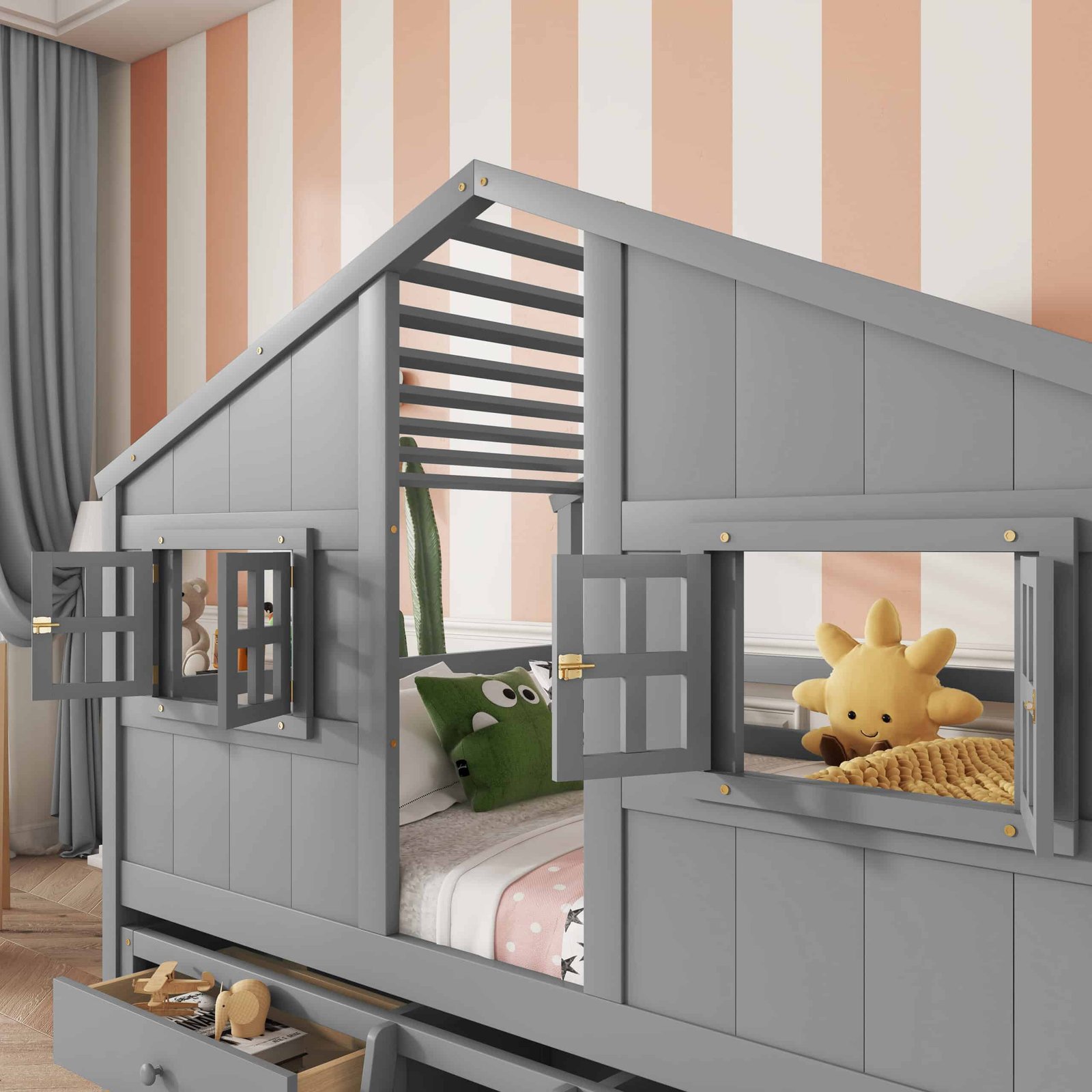 • Aesthetic Appeal: The grey finish blends seamlessly into any room décor, making it a stylish addition to your child’s bedroom.