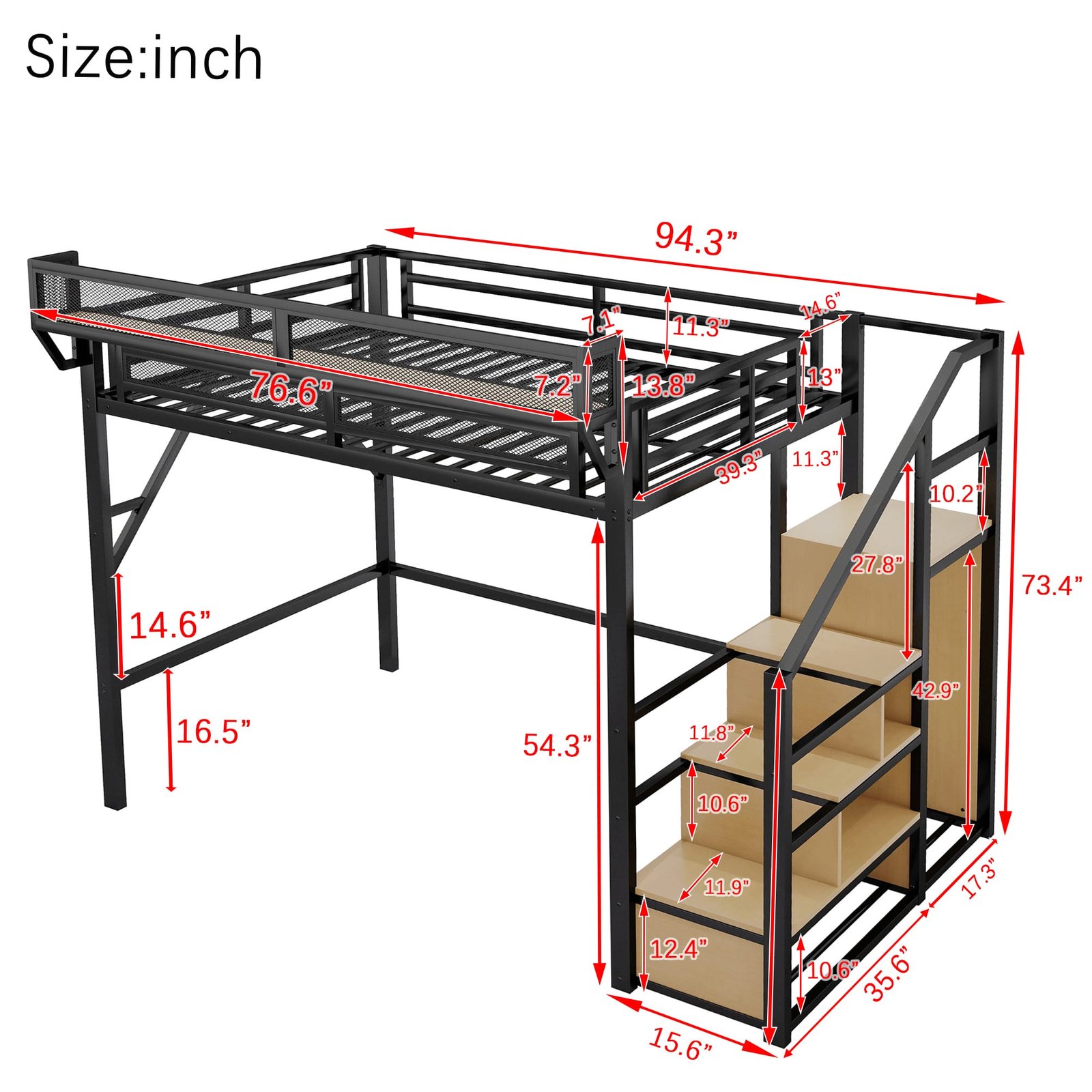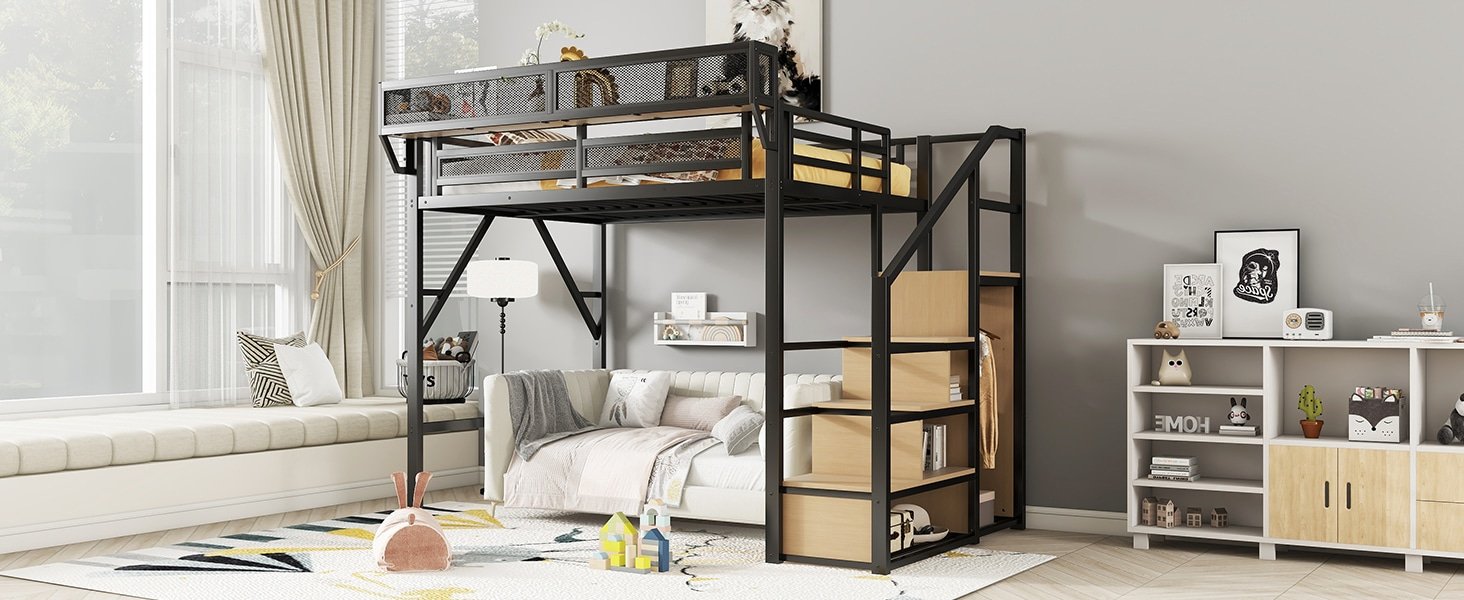 Ultimate Metal Loft Bed with Stairs – Durable, Space-Saving & Stylish for Kids & Teens