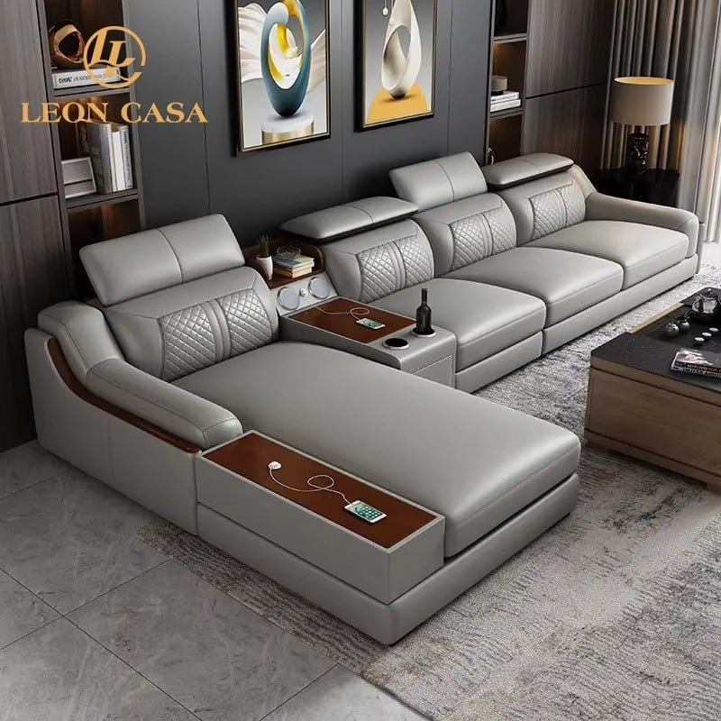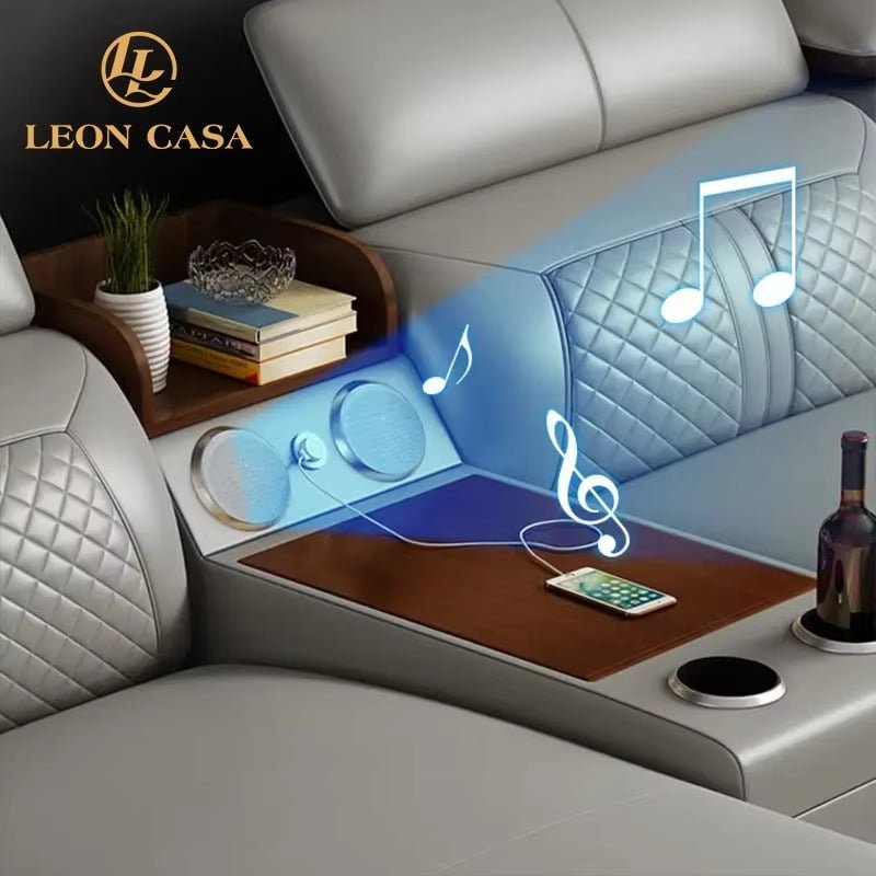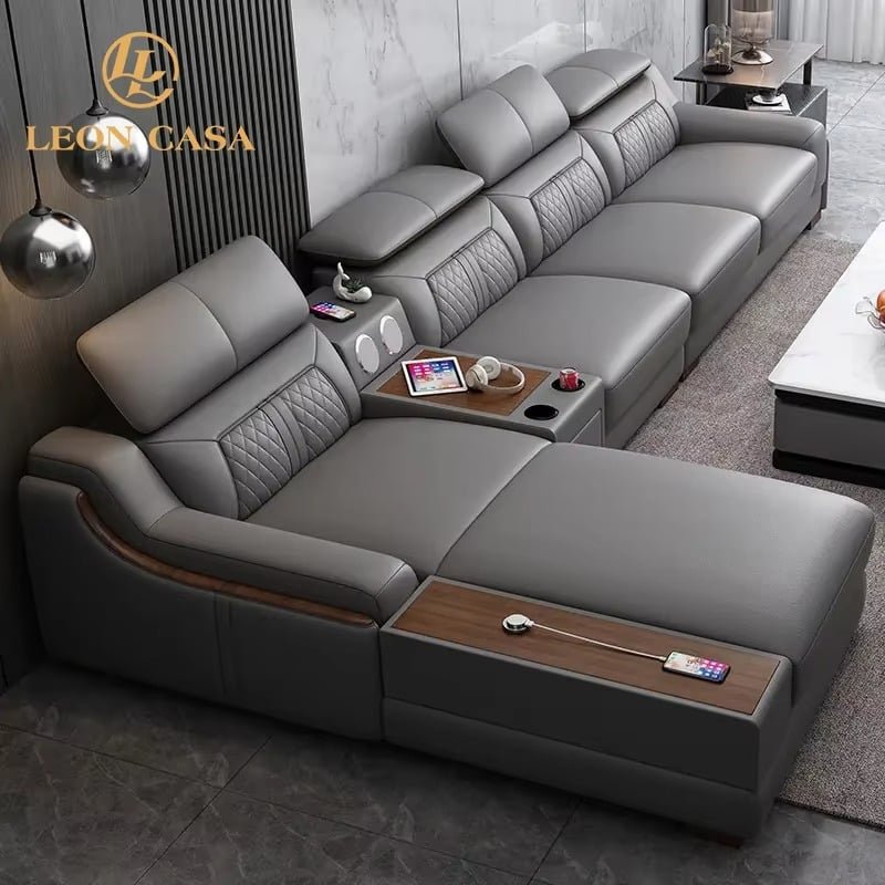 Genuine Leather Sectional Sofa with Reclining Massage and Storage Compartments – Modern Italian Luxury