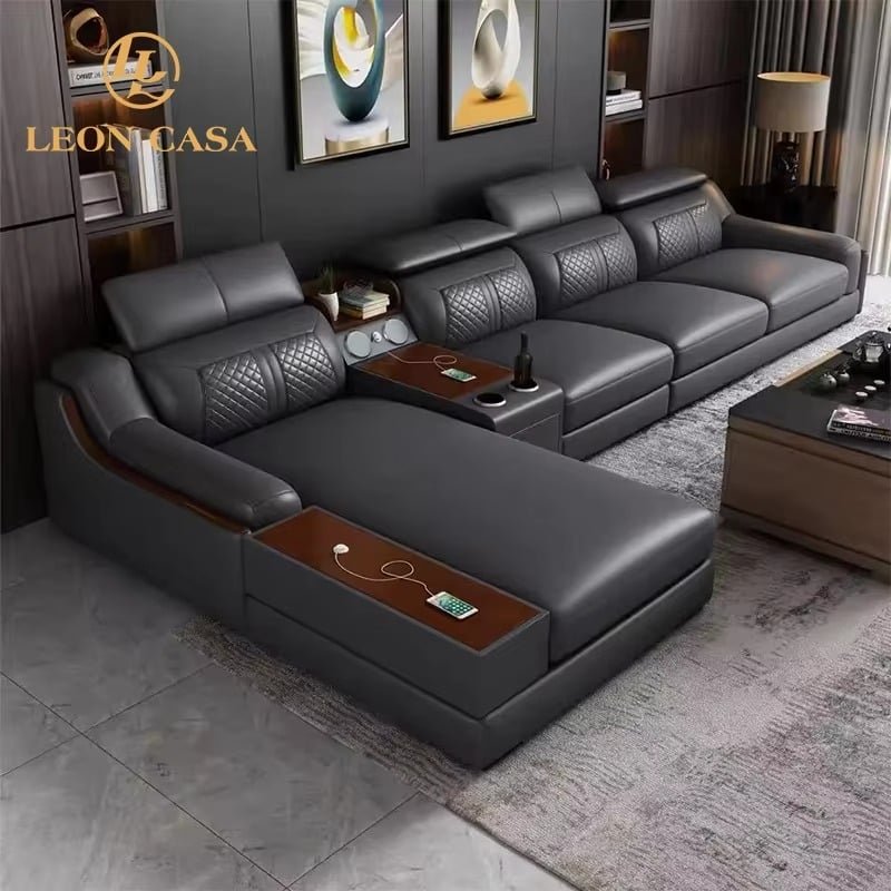 Be the first to review “Genuine Leather Sectional Sofa with Reclining Massage and Storage Compartments – Modern Italian Luxury”