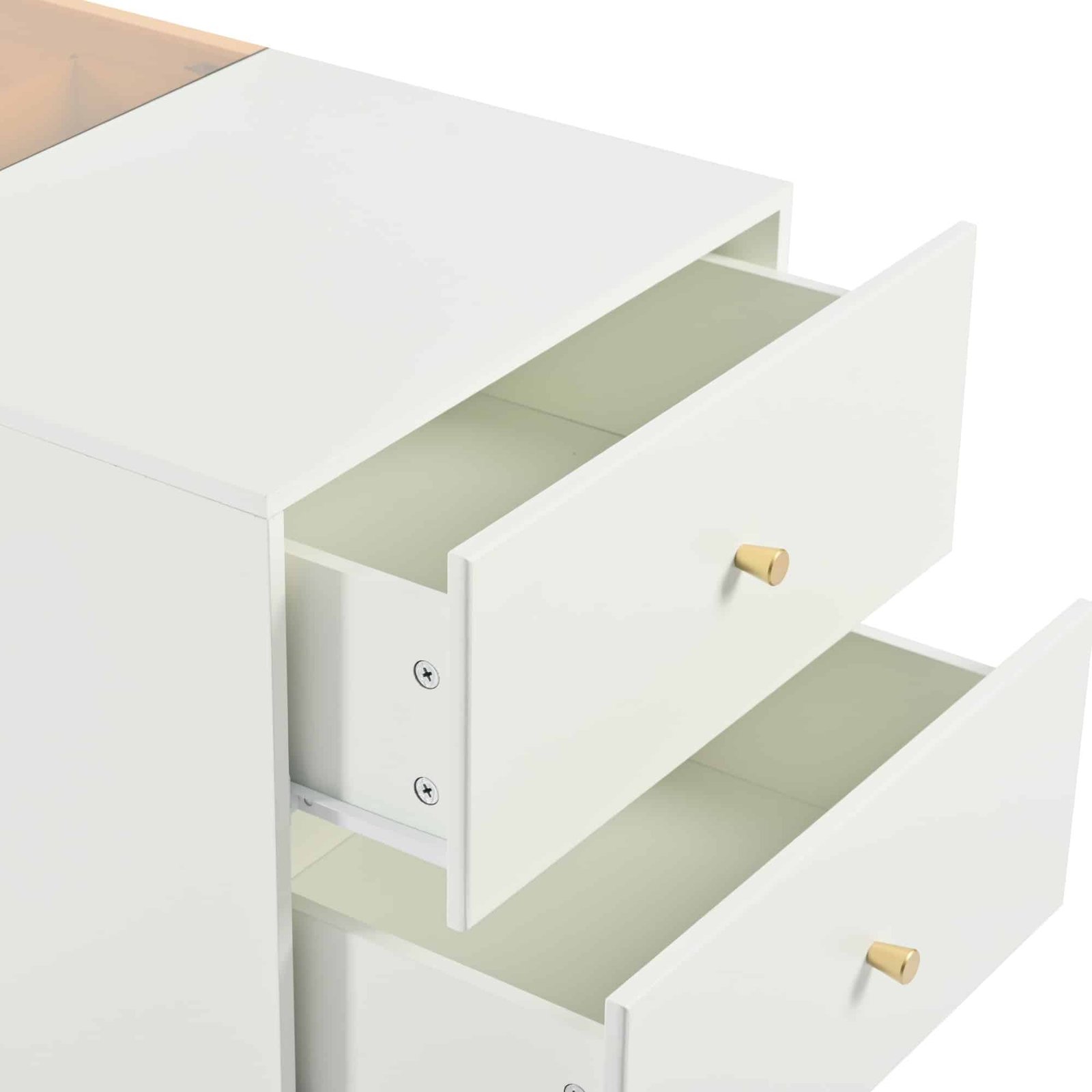 • Sturdy Construction: Crafted from premium MDF and glass, this cabinet is built to last, with a weight capacity of 165 LBS on the top and 30 LBS for each drawer.