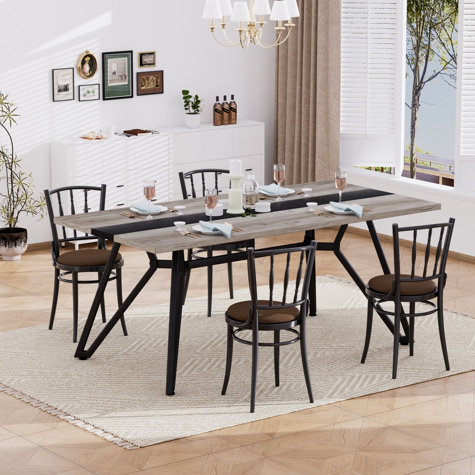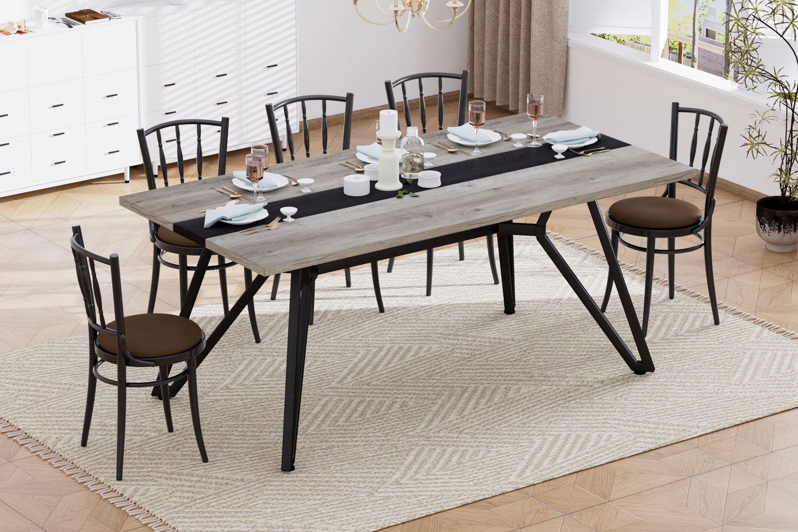 Elevate your dining experience with our deluxe 70.9″ Rectangular Large Dining Table, designed to comfortably accommodate up to 8 people. Its elegant gray and black finish brings a touch of sophistication to any kitchen, living room, or office space, making it the perfect centerpiece for gatherings, meals, or conferences.