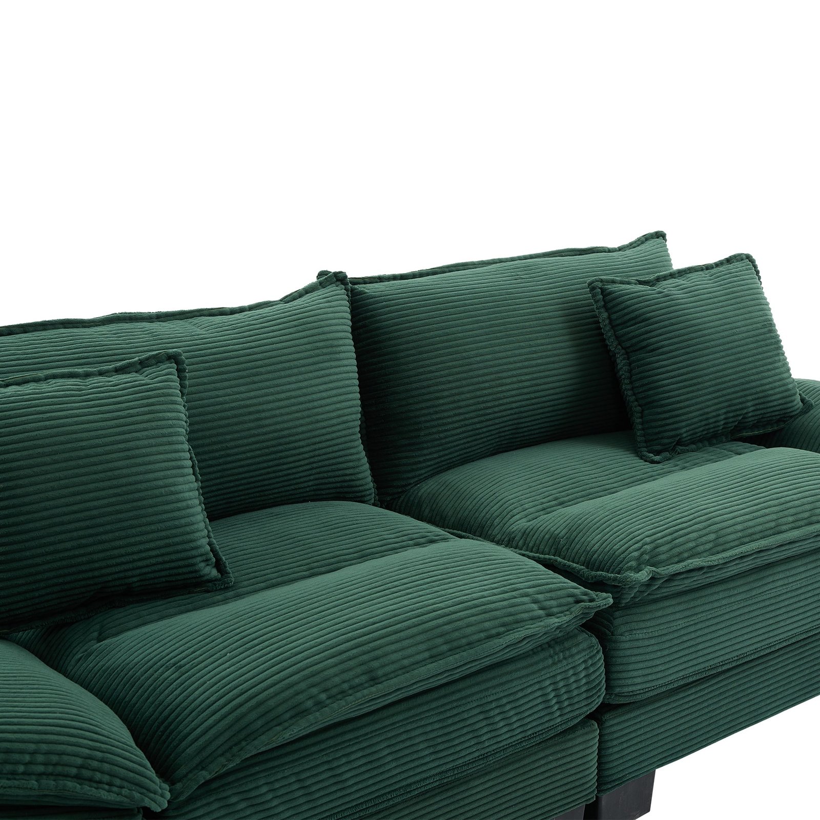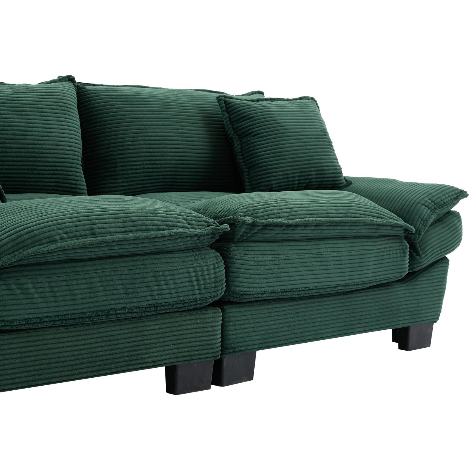 Green Corduroy Loveseat Sofa with Double Layer Cushion and Extra Pillows – 2-Seater