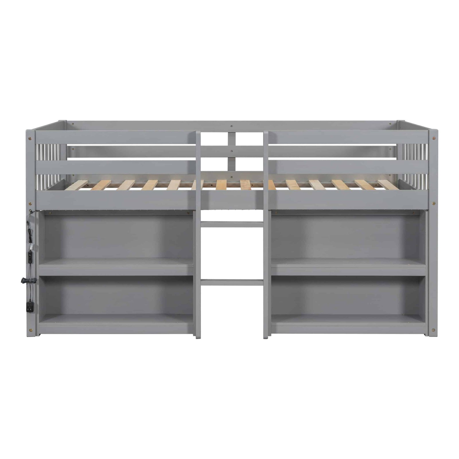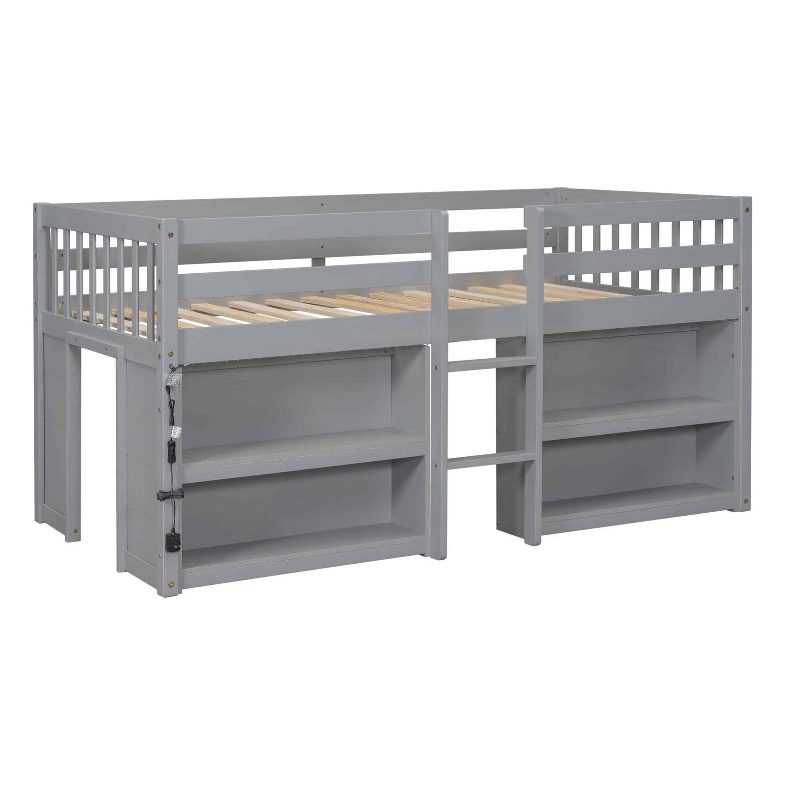Twin Size Kid Low Loft Bed With Two-Tier Shelves And LED Light