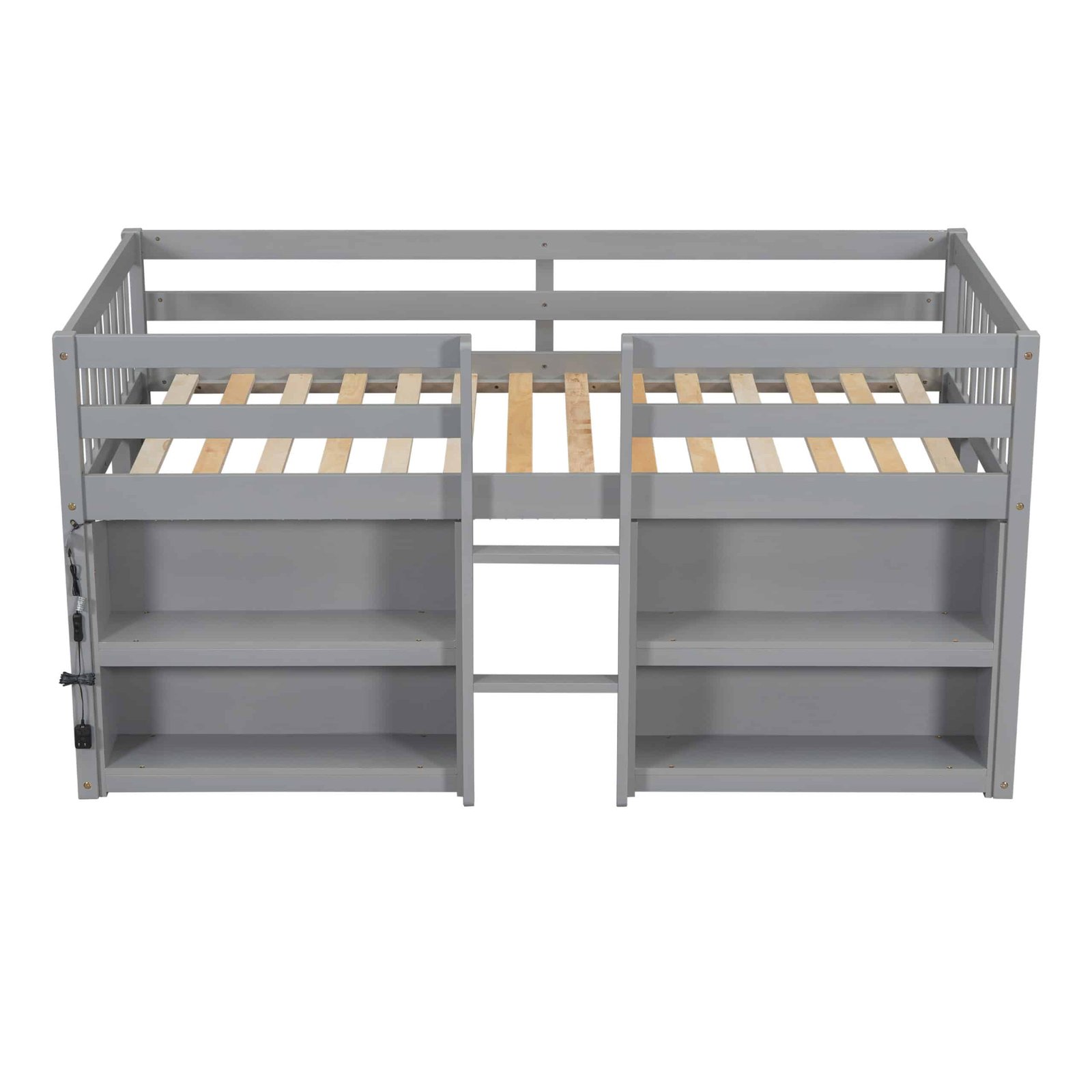 - Spacious Two-Tier Shelves: The built-in two-tier shelves on either side of the bed provide ample room for books, toys, and other essentials, keeping the space tidy and organized.