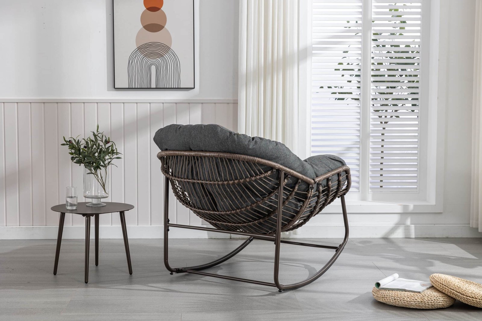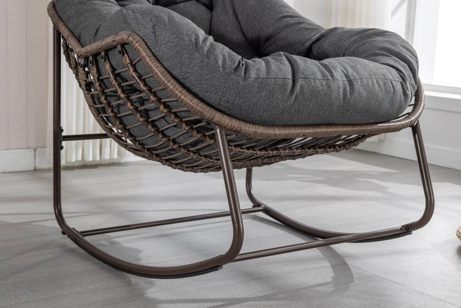 Hand-Woven Rattan Rocking Chair with Ergonomic Design – Grey