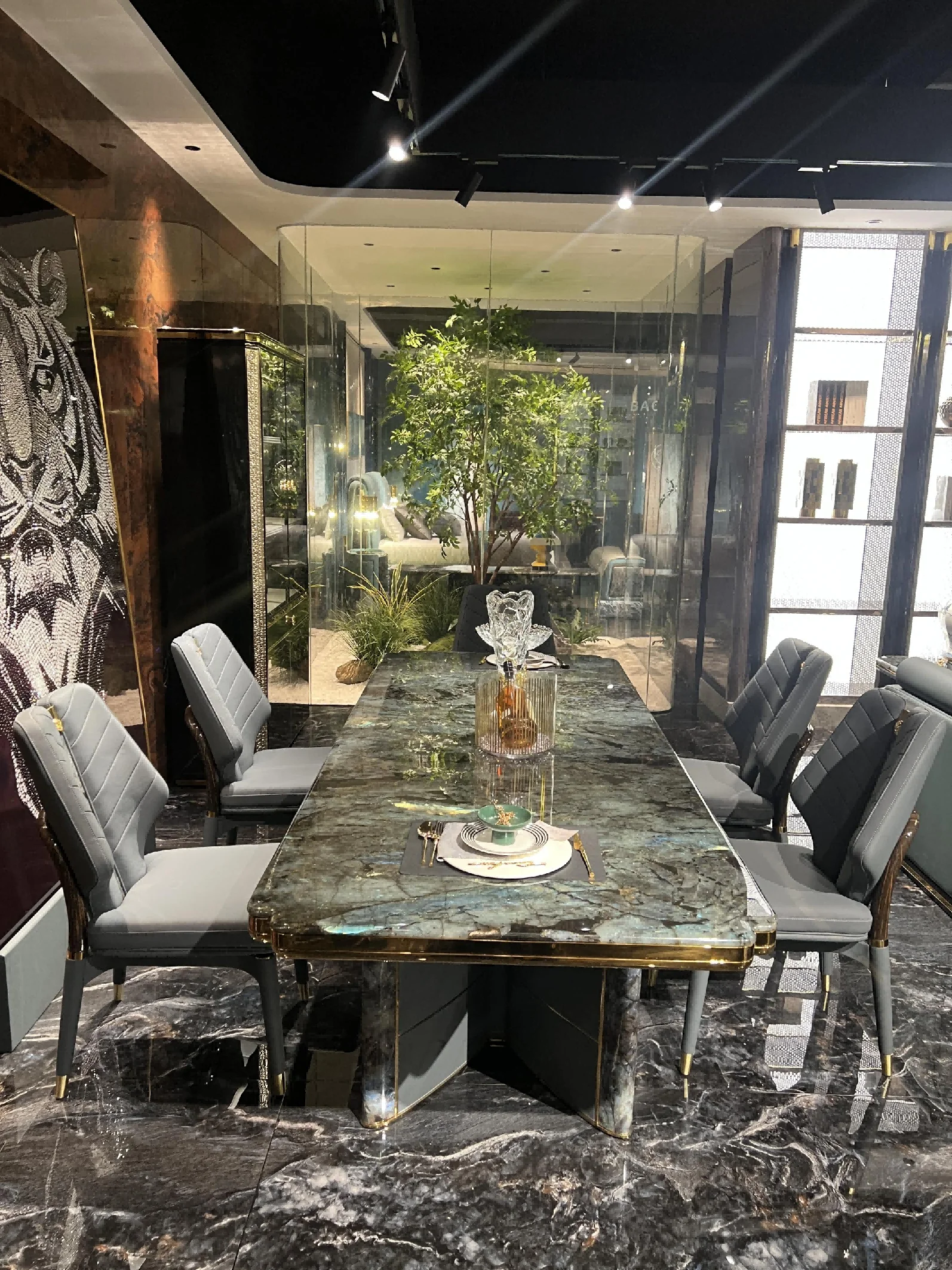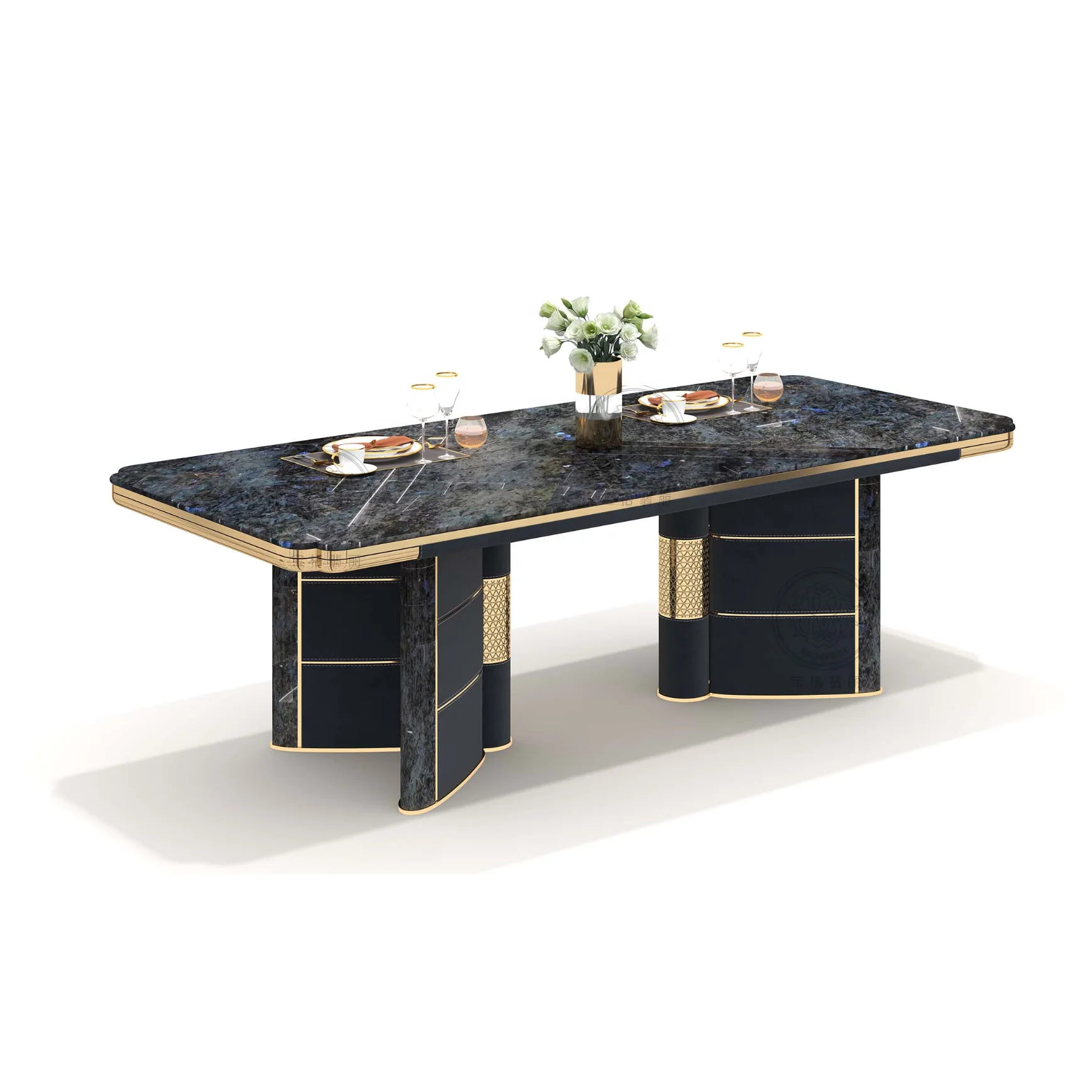 The contrast between dark finishes and metallic accents enhances visual depth, allowing the table to function as a focal point within modern environments. Its clean lines and balanced proportions ensure seamless integration into contemporary, luxury, and transitional design schemes.