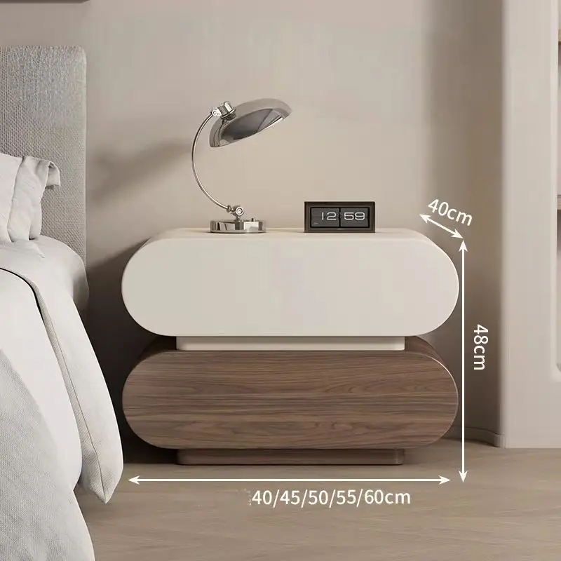 This modern side cabinet blends architectural simplicity with functional innovation, offering a refined storage solution for bedrooms and shared living environments. Constructed from high-quality solid wood, it emphasizes strength, sustainability, and long-term usability. The streamlined exterior reflects contemporary European design influences, while the dual-drawer configuration provides organized storage for personal essentials, documents, or bedside accessories.