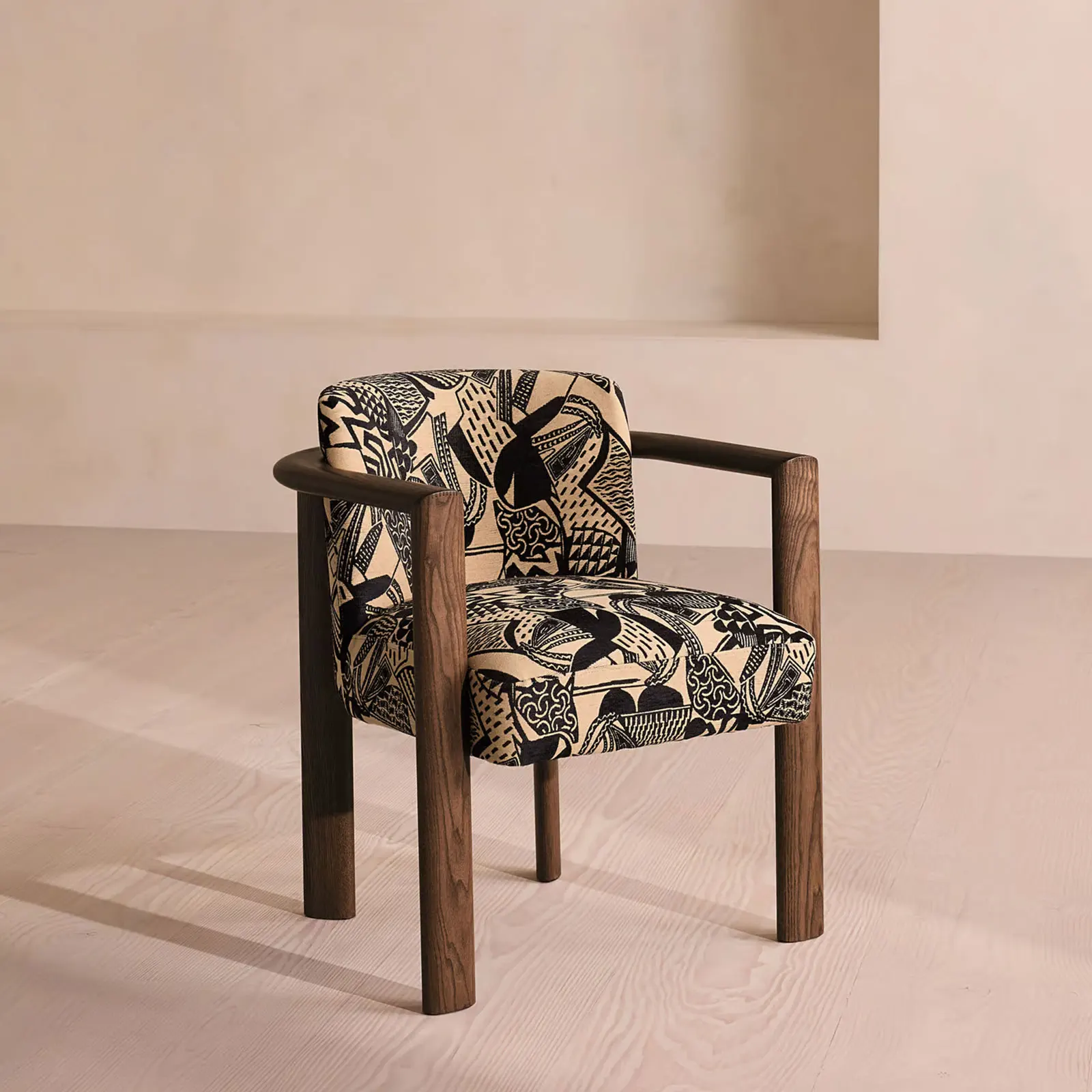 Italian Luxury Ash Frame Dining Armchair – Vintage-Inspired Upholstered Dining Chair