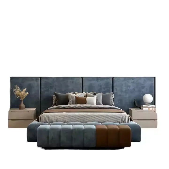 Transform your sleeping sanctuary with our Luxury Modern Bedroom Furniture featuring a sophisticated Queen or King Size Solid Wood Upholstered Bed. With a stunning design in luxury leather, this bed is the epitome of elegance and comfort, combining high-quality materials and modern aesthetics to elevate any space.