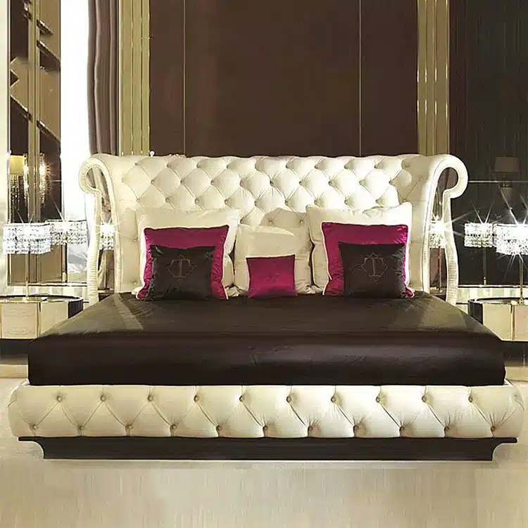 Transform your bedroom into a serene haven with our Queen King Size Bedroom Furniture featuring an exquisite Italian design. This luxury bed is perfect for those who appreciate high-end style and exceptional quality.