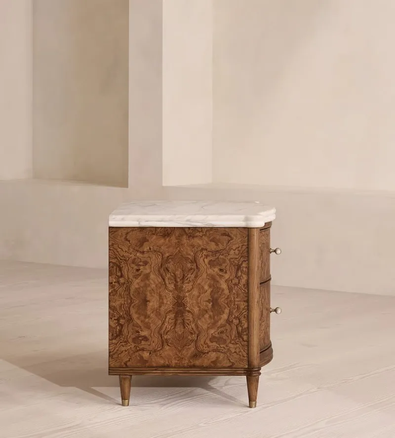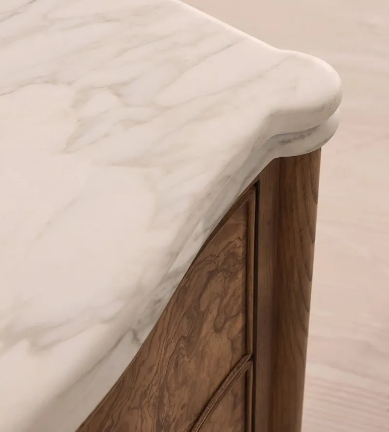 Celebrate the artistry of natural materials with this exquisite wooden nightstand, where the raw beauty of genuine marble meets the warmth of fine wood. Each piece features a naturally veined marble top, ensuring that no two tables are exactly alike, making yours a truly unique addition to your home. Designed for the modern connoisseur, this bedside table bridges the gap between functional furniture and heirloom-quality decor.