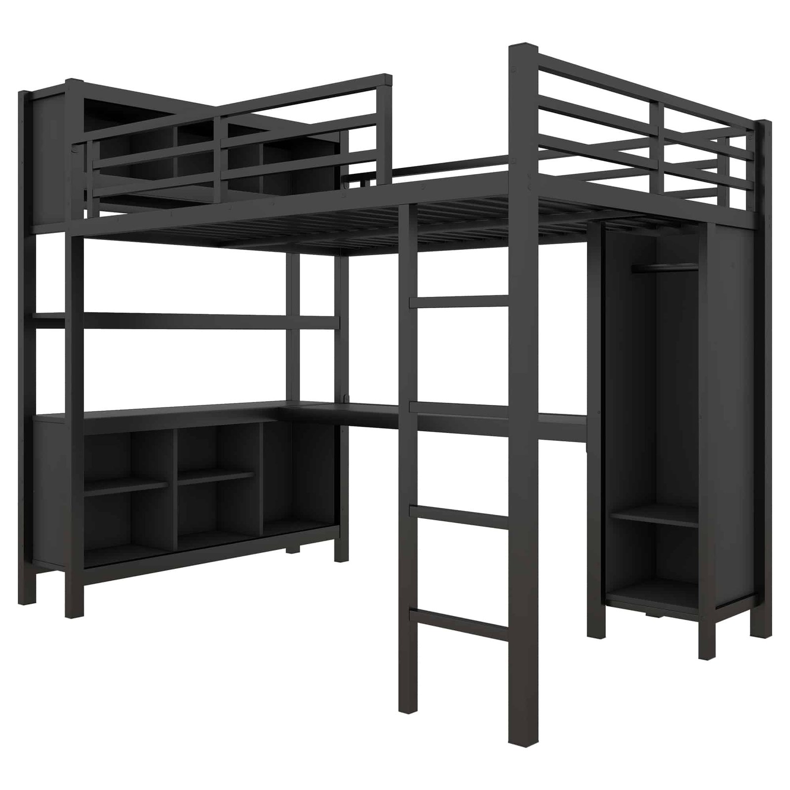 Ultimate Black Metal Loft Bed with Storage & Desk – Space-Saving, Heavy Duty & Stylish for Kids, Teens & Adults