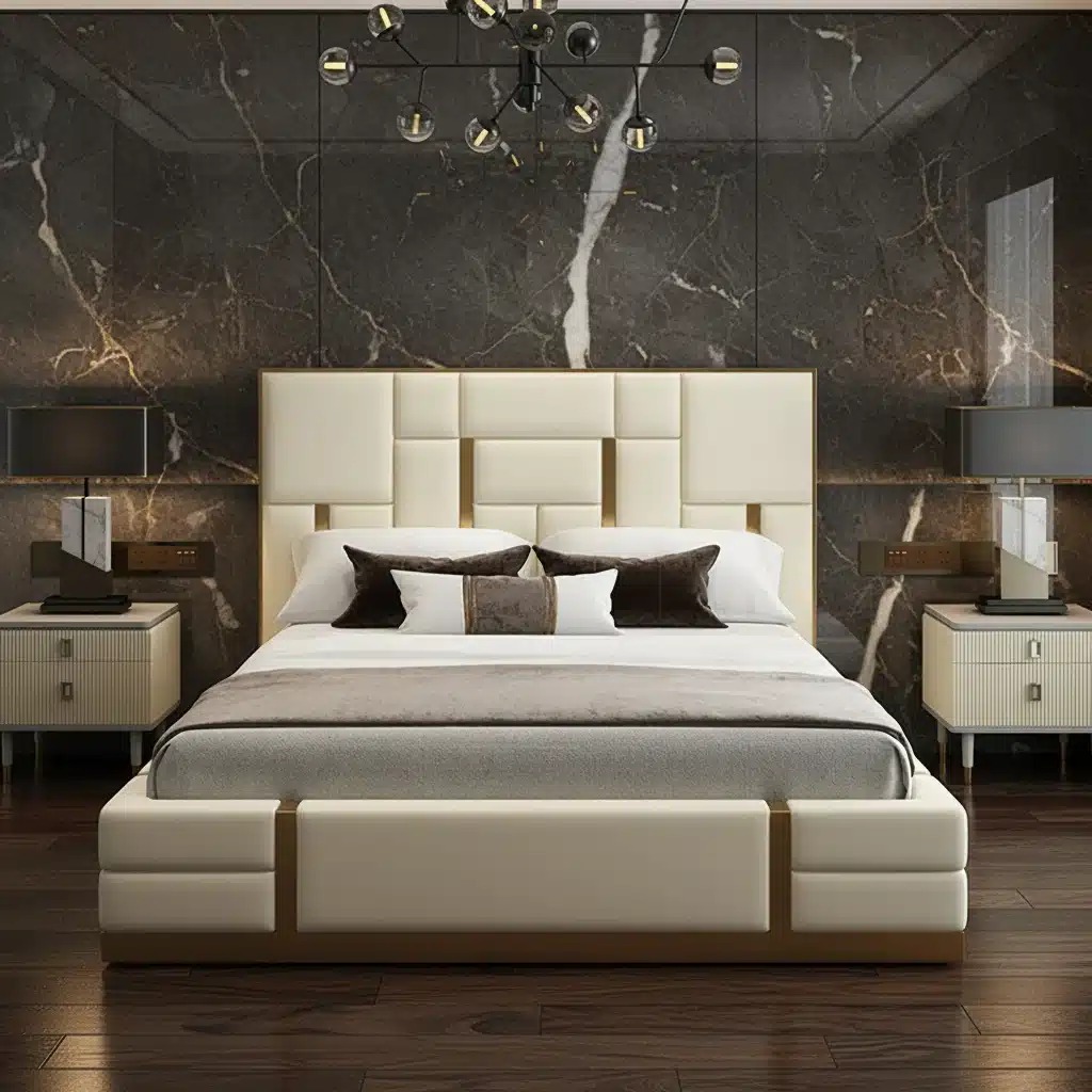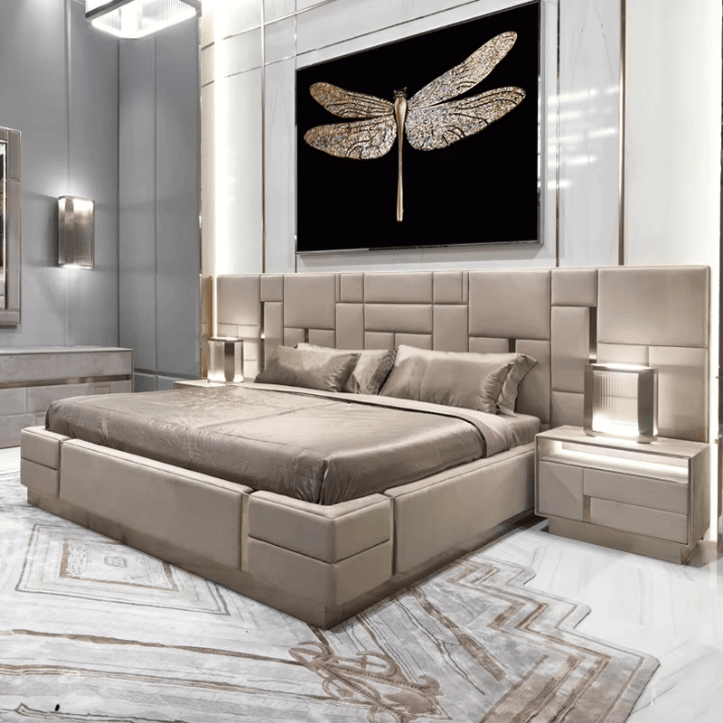 - Premium Upholstery: Upholstered in high-quality microfiber leather with options available in luxurious velvet and real napa leather, each bed is designed to elevate your room’s elegance.